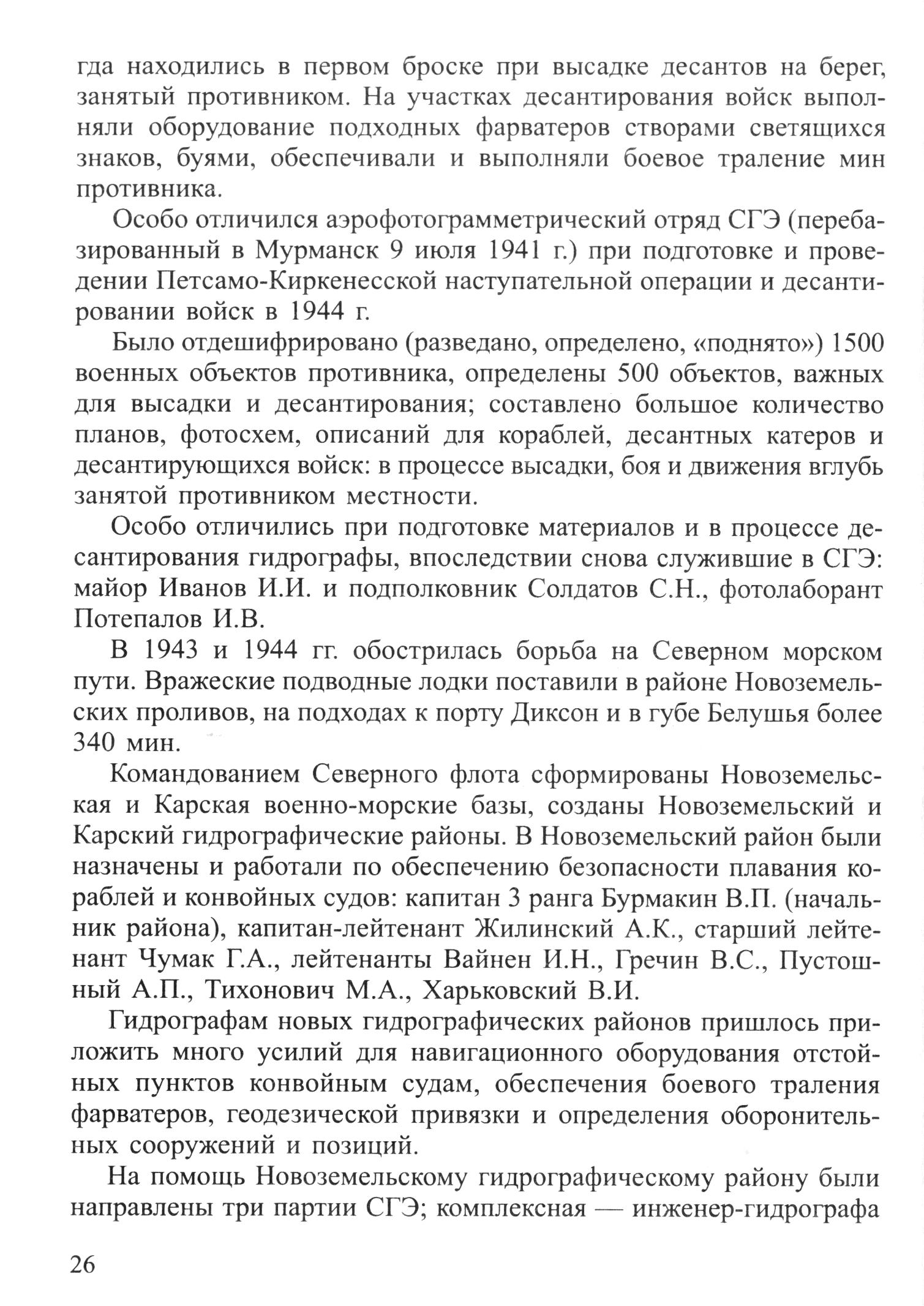 Командованием Северного флота сформированы Новоземельская и Карская военно-морские базы, созданы Новоземельский и Карский гидрографические районы. В Новоземельский район были назначены и работали по обеспечению безопасности плавания кораблей и конвойных судов: капитан 3 ранга Бурмакин В.П. (начальник района), капитан-лейтенант Жилинский А.К., старший лейтенант Чумак Г.А., лейтенанты Вайнен И.Н., Гречин B.C., Пустошный А.П., Тихонович М.А., Харьковский В.И.