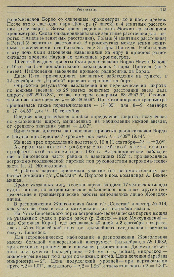 Все же за время наблюдений на всех 7 астрономических пунктах, т. е. за время вывоза на берег хронометров в навигацию 1927 г., они не давали резких колебаний.