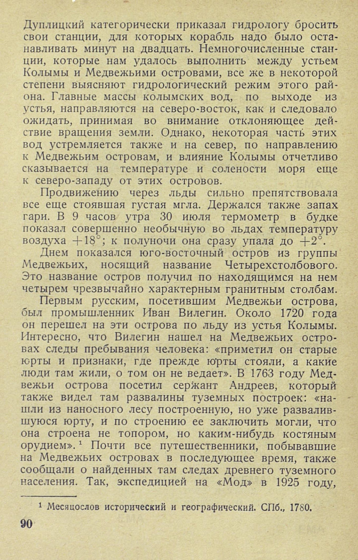 только в северной части Восточносибирского моря, где они были выполнены во время дрейфа «Мод». {1} Производство гидрологического разреза между Медвежьими островами и Новосибирскими представляло