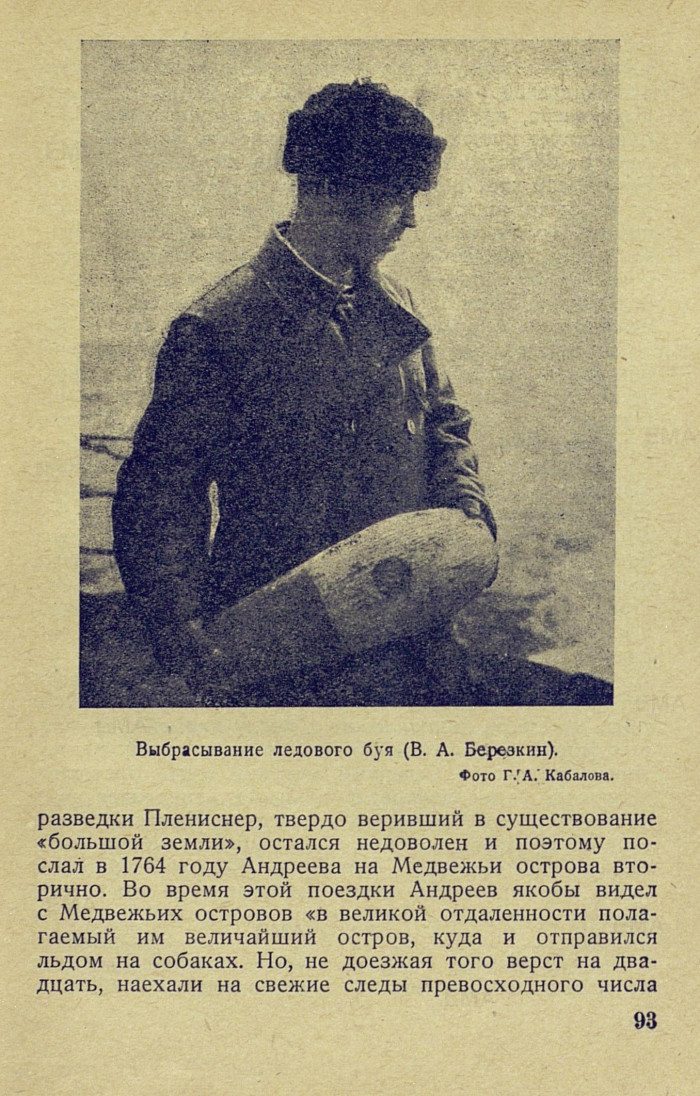 На пути от устья Колымы к Медвежьим островам В. А. Березкин занялся глубоководными наблюдениями, намереваясь выполнить гидрологический разрез. Однако, довести этот разрез до конца ему не удалось. Когда мы вошли в сплоченные льды, Д. С.