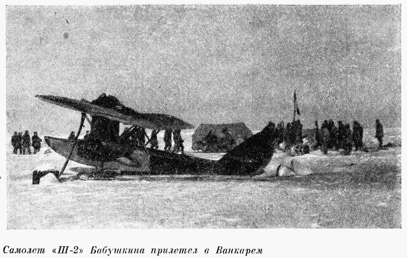 Кинулись к самолету. Что с ним? Оказывается, шасси не выдержало ухабов льдины. Оттащили машину в сторону — дали дорогу находившемуся здесь же самолету Каманина. Тов. Савин, механик самолета «В-33», просил Каманина привезти из Ванкарема ящик с инструментом и запасные части шасси. Несколько человек были немедленно поставлены па расчистку площадки для удлинения аэродрома. Филиппов и Задоров стали помогать Савину в разборке поврежденных частей, а я сел на нарту и галопом поехал в лагерь За нашим убогим инструментом. Захватил я еще валек от весла на случай, если придется заменить металлическую стойку деревянной, и подобрал кое-какие подходящие части от шлюпочных моторов.