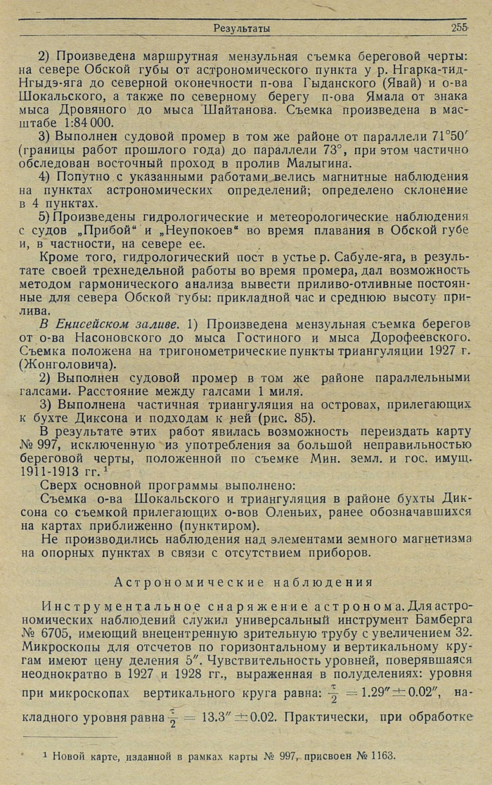 На основе опыта работ последних лет в высоких северных широтах была учтена возможная точность при определении координат опорных пунктов в условиях работ 1928 г.