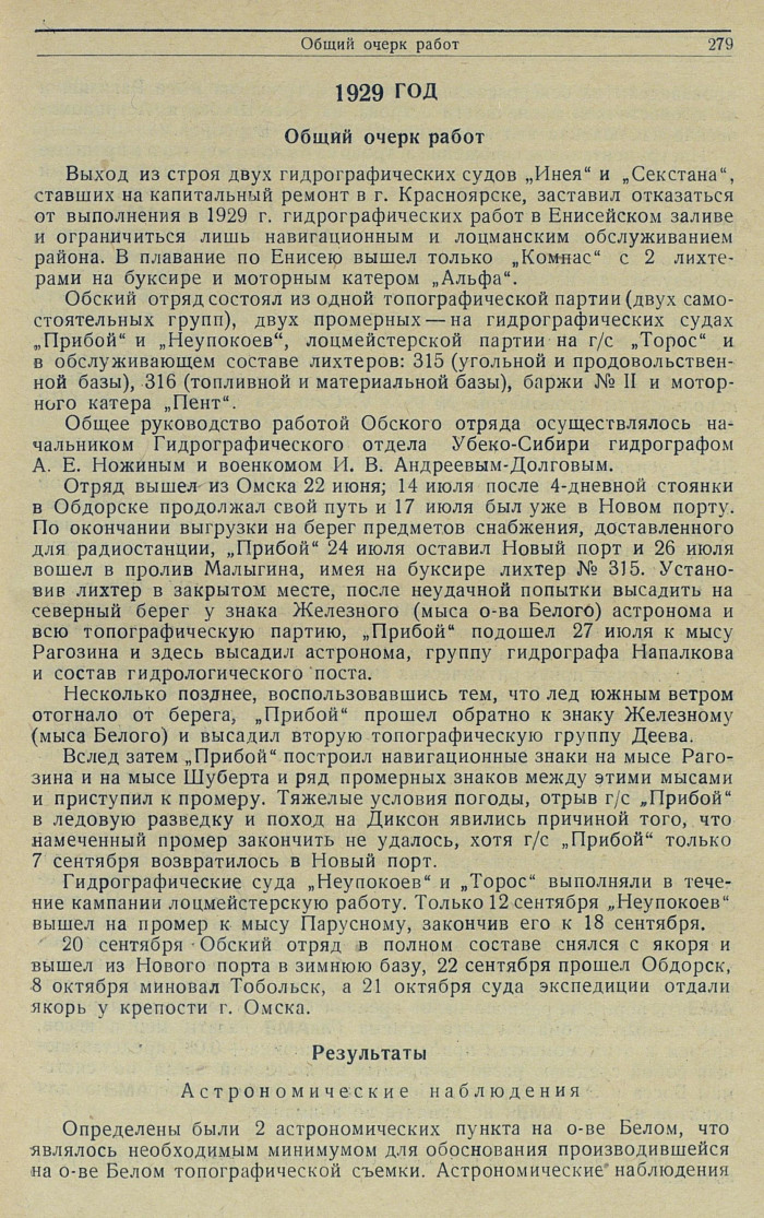 произведены на северозападной стороне острова, на мысе Рагозина и на юговосточной оконечности острова, на мысе Шуберта. Астрономические наблюдения вел командир г/с „Иней“ Воробьев.