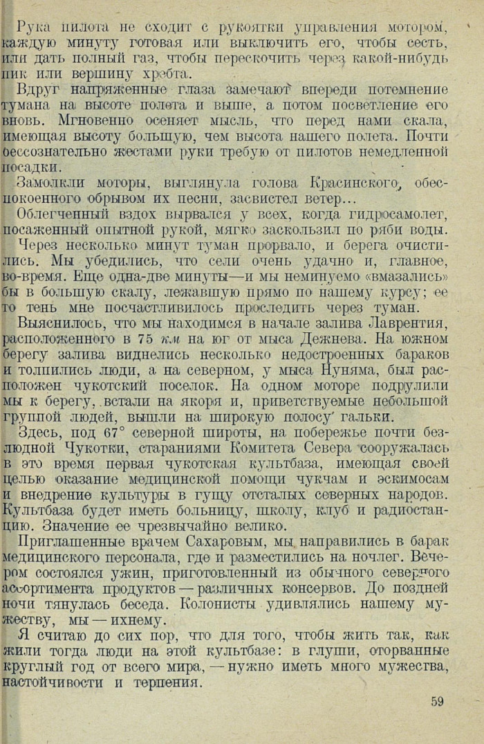 Изредка мелькали одинокие яранги и быстро скрывались в молоке тумана. Полет становился все более рискованным, так как уже не видно было скал и гор, высота которых здесь достигает до 1000 м и более. Глаза до боли впиваются и молоко тумана и стараются рассмотреть что-либо впереди.