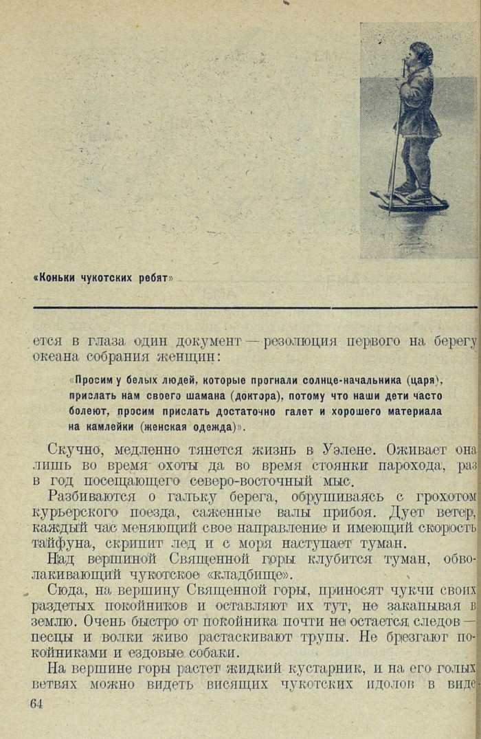 Скучно, медленно тянется жизнь в Уэлене. Оживает она лишь во время охоты да во время стоянки парохода, раз в год посещающего северо-восточный мыс.