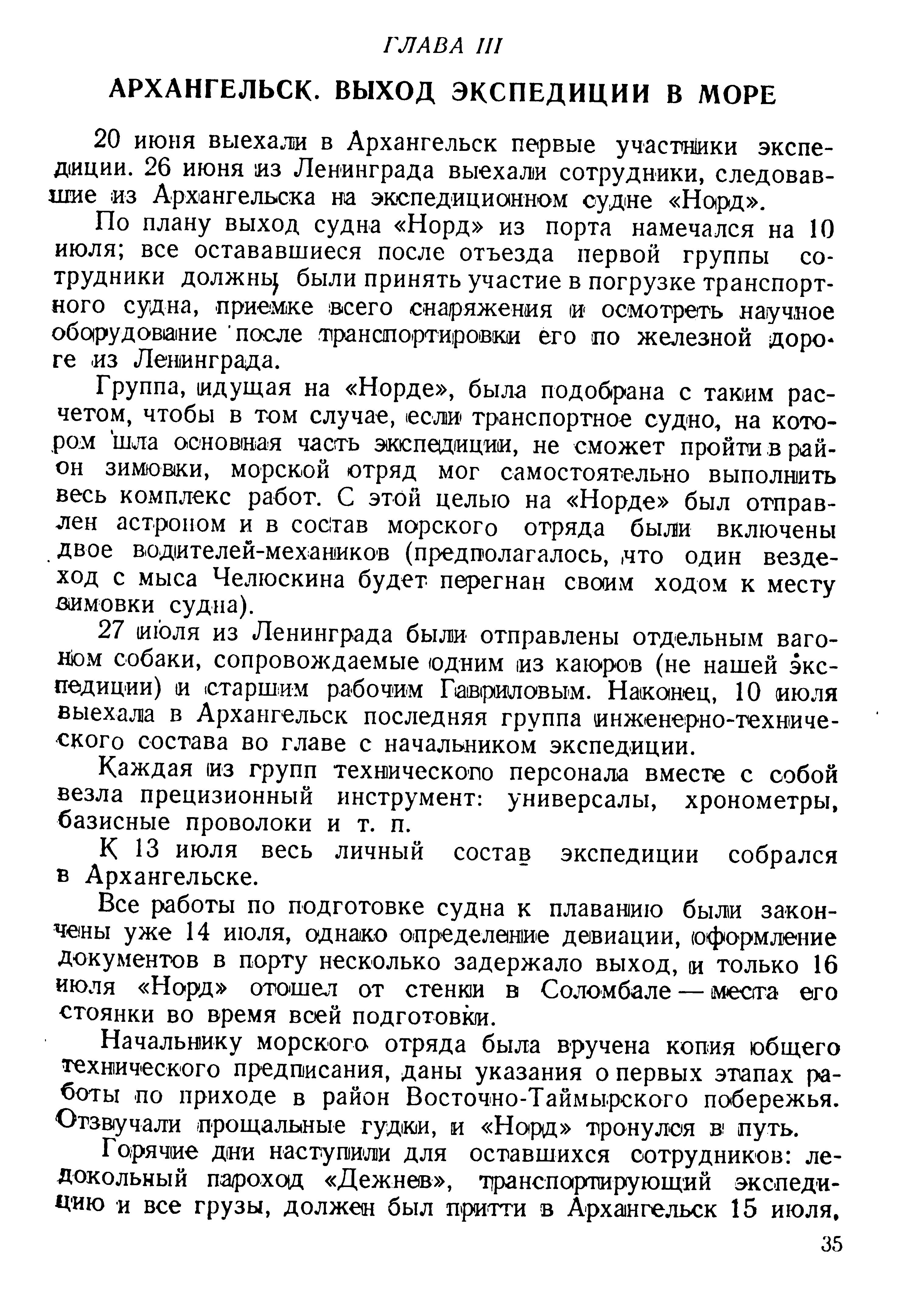 27 июля из Ленинграда были отправлены отдельным вагоном собаки, сопровождаемые одним из каюров (не нашей экспедиции) и старшим рабочим Гавриловым. Наконец, 10 июля выехала в Архангельск последняя группа инженерно-технического состава во главе с начальником экспедиции.
