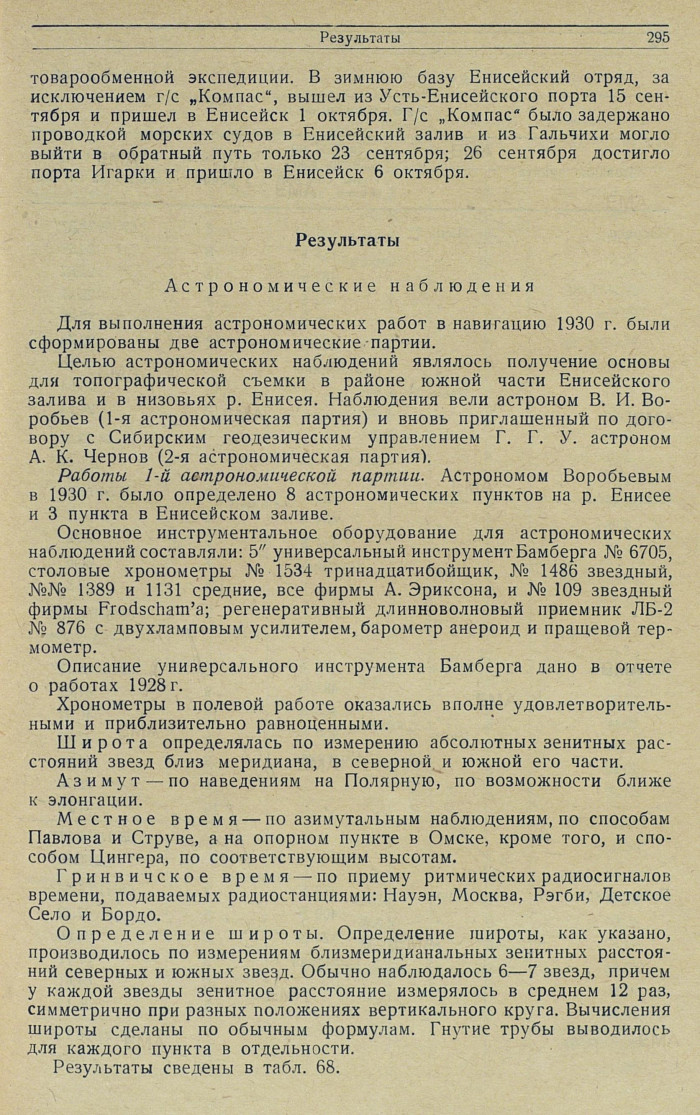 РезультатыАстрономические наблюденияДля выполнения астрономических работ в навигацию 1930 г. были сформированы две астрономические партии.