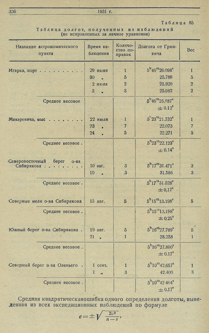 Хронометры, как показала работа на пунктах, были удовлетворительны и притом приблизительно равноценны, так что веса их можно принимать одинаковыми.