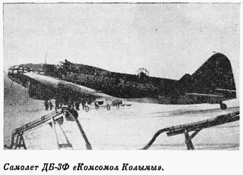 ли в распоряжение Главного командования Красной Армии более 13 миллионов рублей, собранных на строительство боевых самолетов. На эти средства построено и передано Красной Армии звено бомбардировщиков «Дальстроевец», авиаэскадрилья самолетов «Комсомолец Дальстроя», авиазвено бомбардировщиков «Комсомол Колымы», звено санитарных самолетов, самолеты «Колымский колхозник», «Общественница Дальстроя».