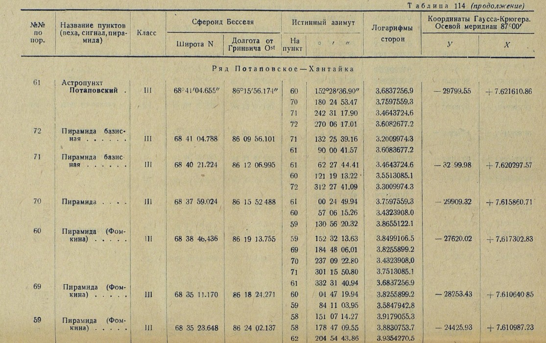 Координаты, вычисленные от астропункта Потаповского... 69 01 32.608 — 86 07 40.886 —