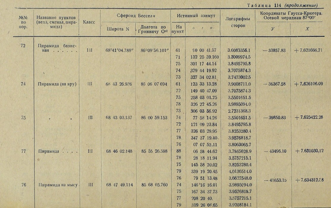 72 Пирамида базисная...... III 68°41'04.788" 86°09'56.101" 61 90 00 41.57 3.6083356.1 -33857.83 +7.621666.71