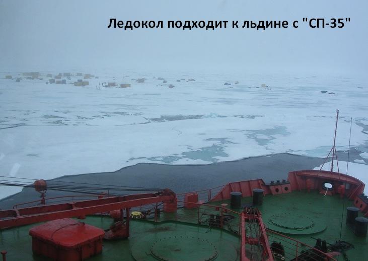 13 июля. 13.00 8102\3123 подошли к льдине, на которой находится СП-35. Проложили канал для подхода НЭС «Михаил Сомов». Начальник станции отметил красными флажками место подхода судна. Саму льдину «трогать» не стали, чтобы не образовалась какая-нибудь непредвиденная трещина. Отошли в сторону от проложенного канала. Остановились в ожидании подхода к месту погрузки НЭС «Михаил Сомов». 14.15 «Михаил Сомов» подошёл к льдине, ошвартовался, заведя ледовые якоря. Началась эвакуация СП-35, на которую отведено трое суток. Проводкой от кромки до льдины прошли 172 мили. Время в дороге 19 часов 30 минут. При хорошей видимости, пожалуй, получилось бы часа на 2-3 быстрее.