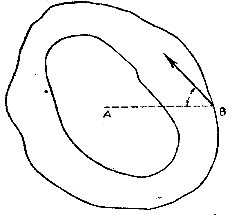 В точке В на нашем рисунке давление атмосферы будет больше, чем в точке А, и, следовательно, воздух тяжелее. Поэтому для восстановления равновесия воздух должен стремиться от точки В к точке А по направлению так называемого градиента давления. Но как только начнется движение частиц воздуха в этом направлении, сейчас же возникнут и начнут действовать еще две силы: сила Кориолиса и сила трения частиц воздуха между собой и о земную поверхность. В результате действия трения и силы Кориолиса, как показывают непосредственные наблюдения, движение частиц воздуха у земной поверхности или, другими словами, ветер над ровными земными поверхностями умеренных и высоких широт северного полушария отклоняется от линии АН, т.е.; от градиента давления, градусов на 50 — 60 вправо.