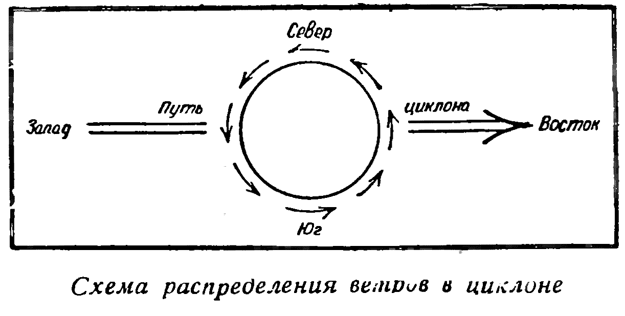 Одним из следствий усиления циркуляции атмосферы является изменение циклонической деятельности в высоких широтах. Наблюдения показывают, что в период потепления Арктики циклоны, приходящие с севера Атлантики, перемещаются в Арктике и Субарктике по траекториям, расположенным значительно севернее тех траекторий, по которым циклоны следовали до потепления Арктики. Это смещение циклонических путей к северу выражается многими сотнями, даже тысячью километров. В результате в Арктике, особенно в окраинной ее зоне, вместе с потеплением произошло весьма заметное изменение ветрового режима. Как легко видно из схемы распределения ветров в циклоне (см. рис. на стр. 6), в северной половине циклона дуют ветры с восточной составляющей (СВ, В, ЮВ), а в южной — ветры с западной составляющей (СЗ, 3, ЮЗ). Если в период до потепления Арктики через какой-либо пункт в окраинной зоне Арктики большинство циклонов проходило своей северной половиной и если в связи с перемещением циклонических траекторий к северу циклоны в период потепления Арктики стали проходить через этот же пункт своей южной половиной, то в рассматриваемом пункте изменение режима ветра в период потепления Арктики должно сказаться в увеличении повторяемости ветров с СЗ, 3 и ЮЗ в ущерб повторяемости ветров с СВ, В и ЮВ. Наблюдения наших полярных станций показывают, что такое изменение ветрового режима произошло в действительности. Например, в Югорском Шаре повторяемость югозападных ветров в период потепления Арктики увеличилась в 2—4 раза по сравнению с повторяемостью этих ветров до потепления Арктики. Вместе с тем резко уменьшилось число ветров с восточной составляющей. Например, до 1920 г. юговосточные ветры дули в Югорском Шаре зимою чаще, чем югозападные, а после 1920 г. над юговосточными ветрами стали преобладать югозападные.