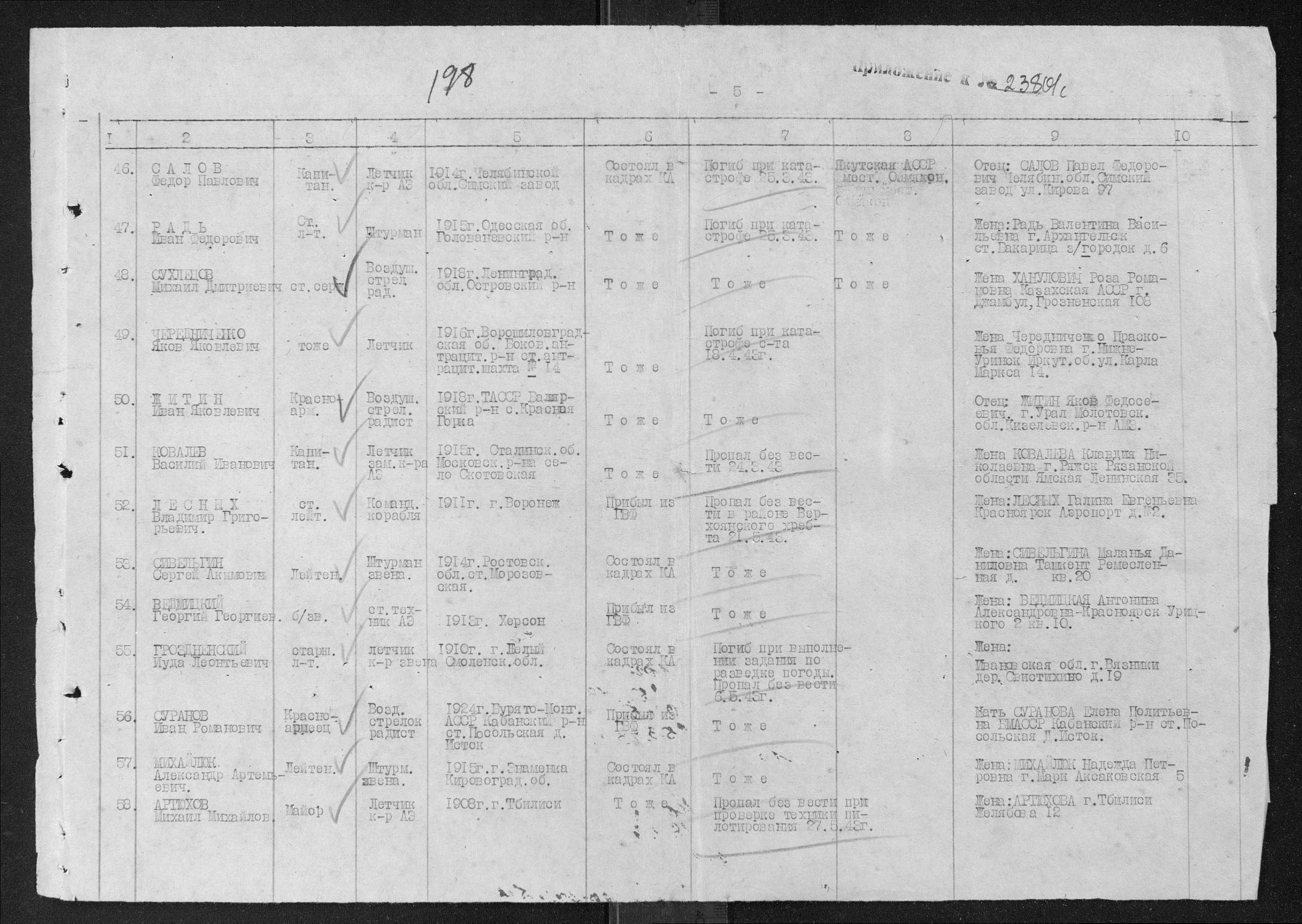 Григорий Петрович Чуйко, заместитель командира авиаэскадрильи 5-го перегоночного авиаполка, вылетевший на самолете такого же типа. Однако в документах в графе "дата и причина катастрофы" значится, что произошло это в районе Н-Илимска,