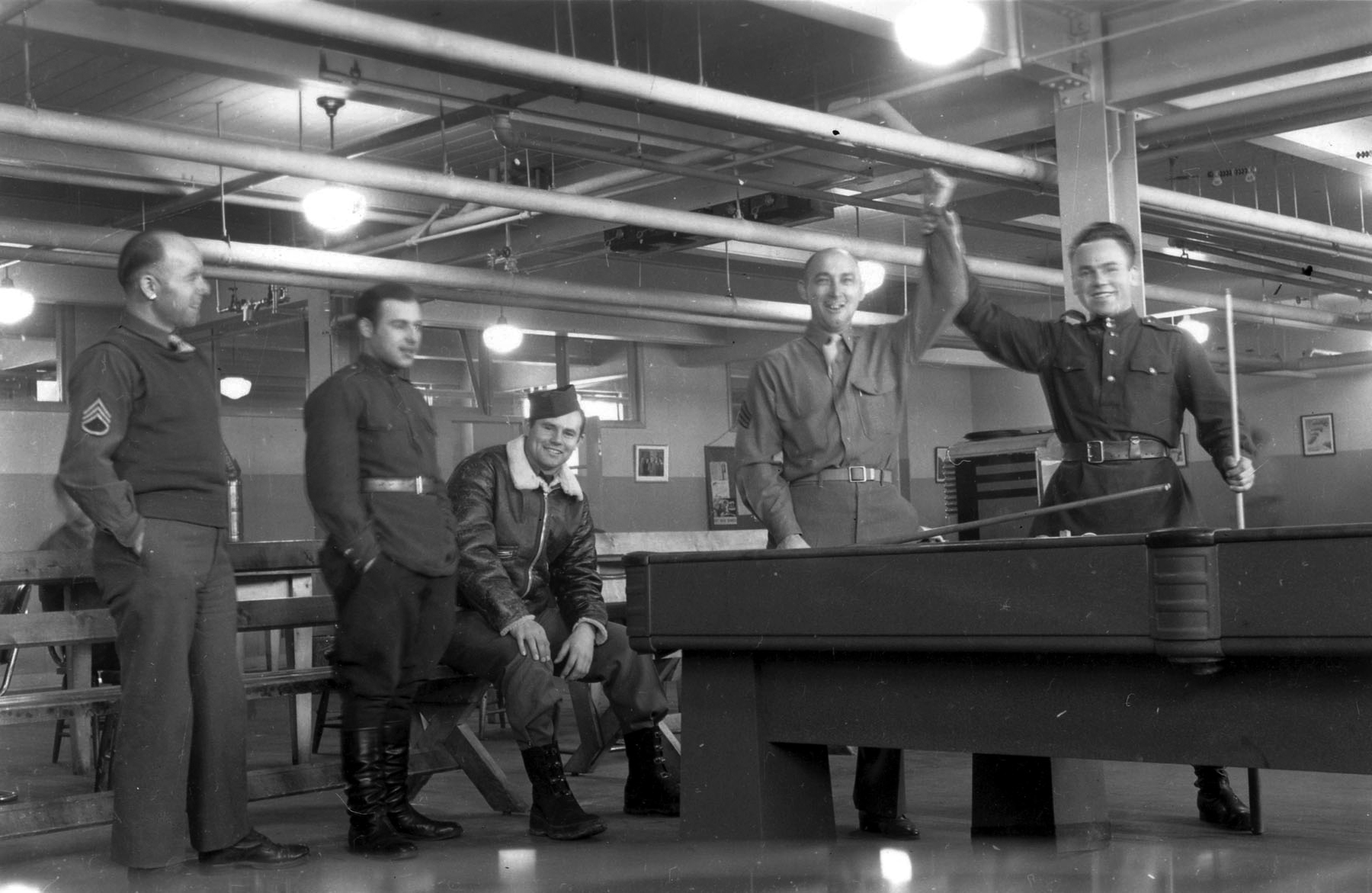 :": Советские и американские солдаты играют в бильярд. Аляска. Время съемки: 1944 http://waralbum.ru/25332/