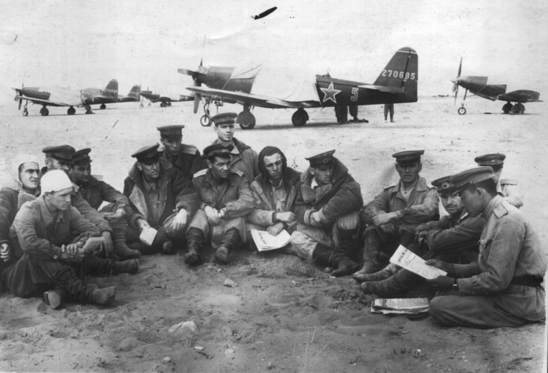 :": Советские летчики-перегонщики на одном из транзитных советских аэродромов. http://waralbum.ru/24750/