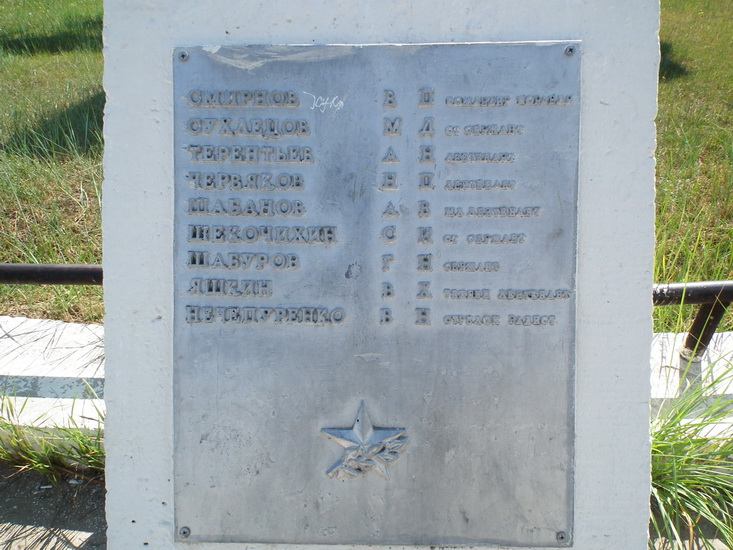 От нее идет аллея к площадке, по периметру которой установлено восемь плит с именами 113 летчиков, погибших на трассе.