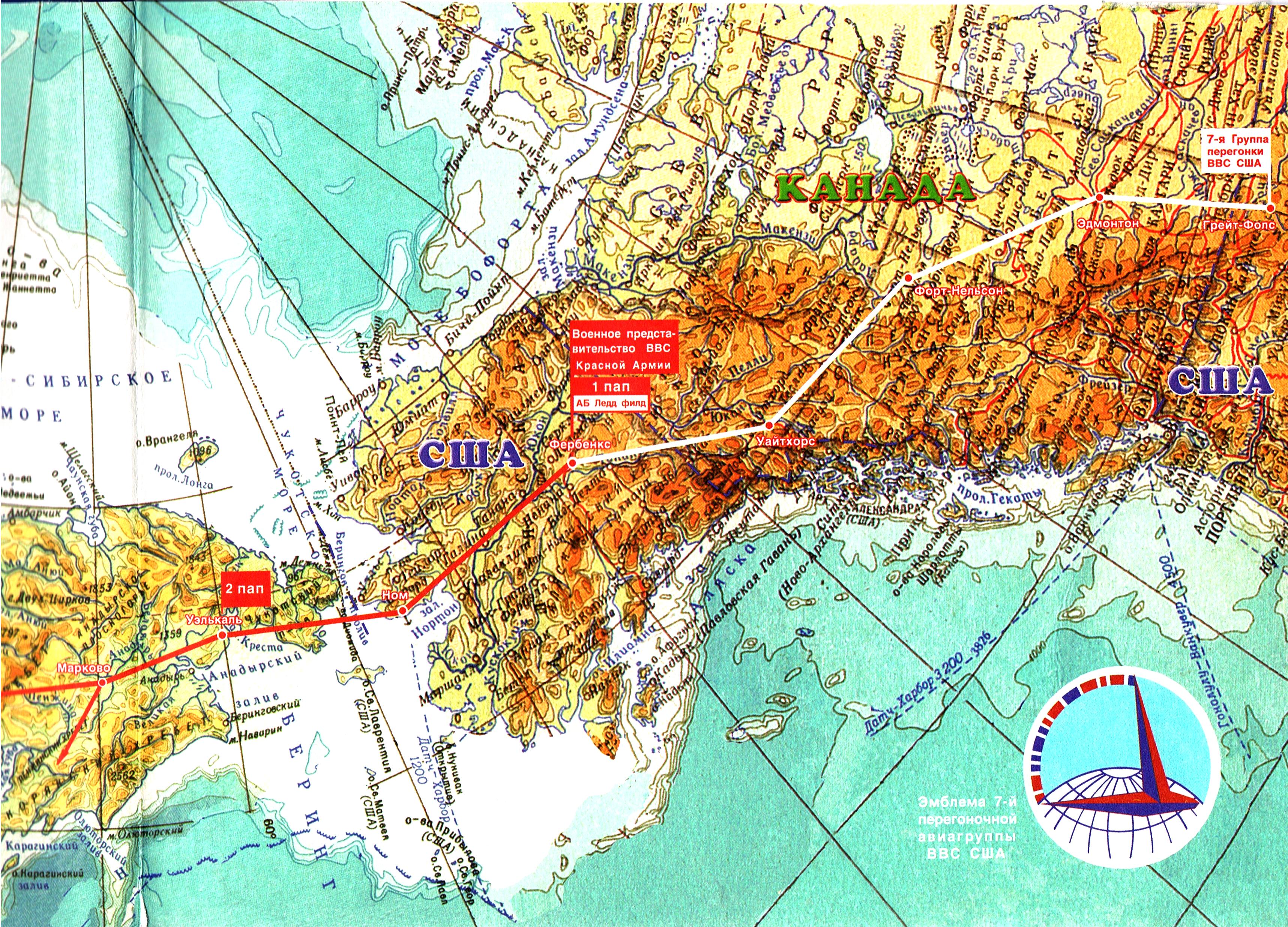 б) 1-й перегоночный авиационный полк, с дислокацией в г. Фербенксе. Задача полка: перегонять самолеты из Фербенкса в Уэлькаль. Протяженность маршрута 1500 км;