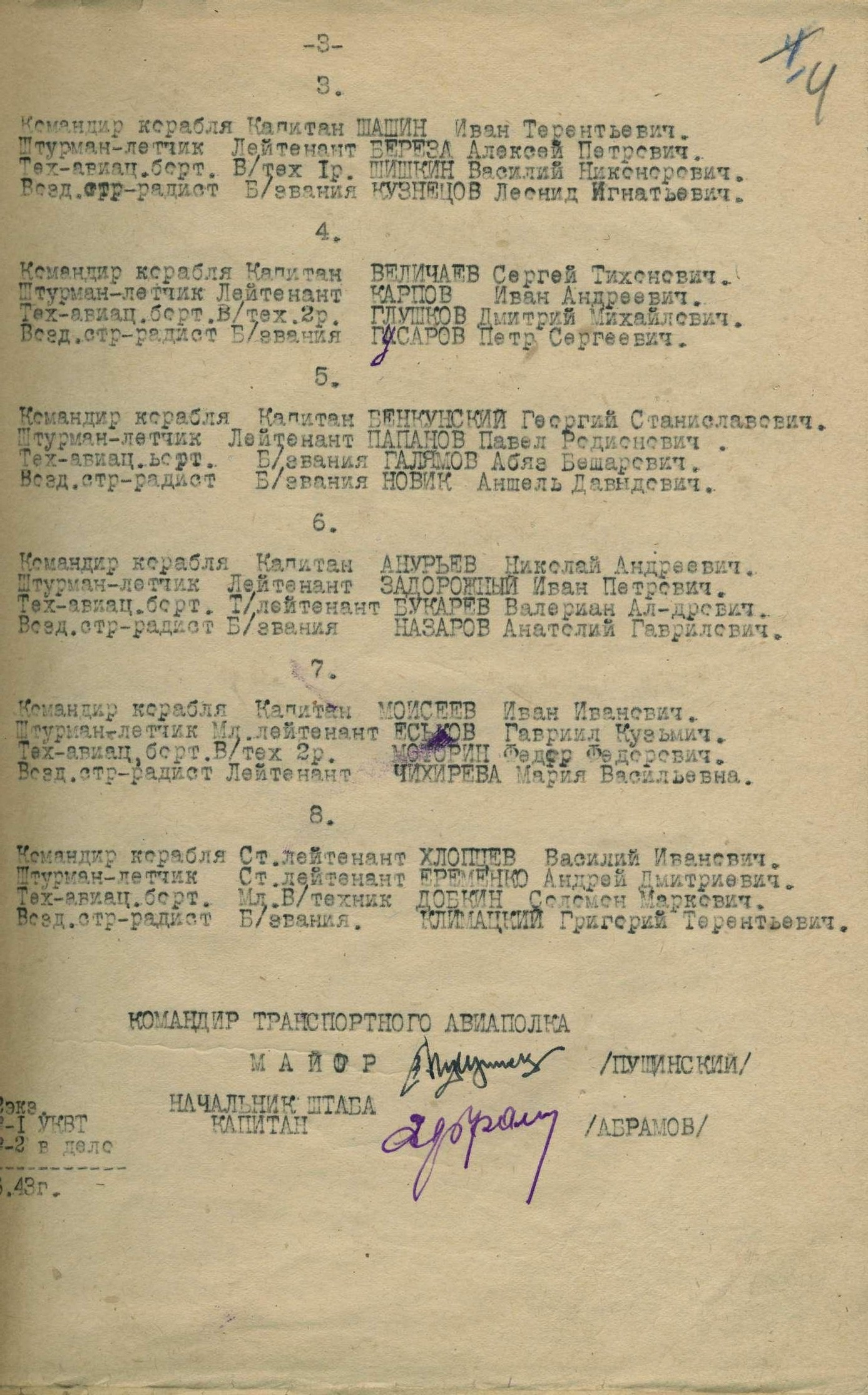 vozduzhnaya trassa (KrasnoyarskAir Route) from 04jan43; return