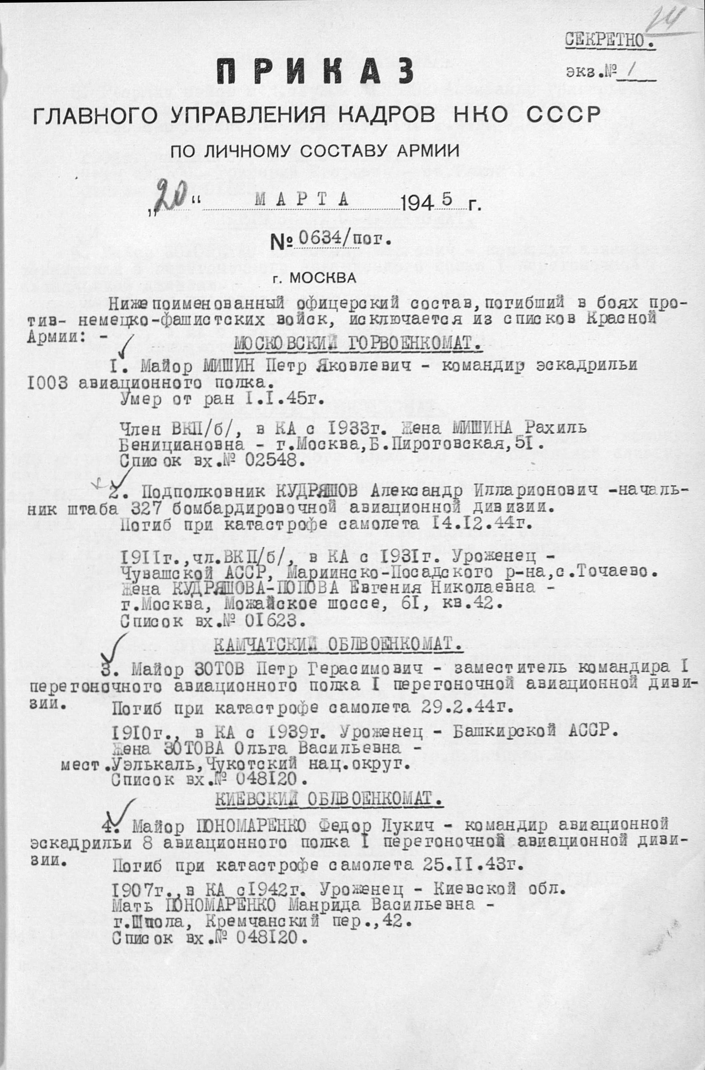Зотов Петр Герасимович (старший лейтенант) – затем майор, заместитель командира 1-го ПАП, погиб при катастрофе В-25 22.02.44г. (АК)
