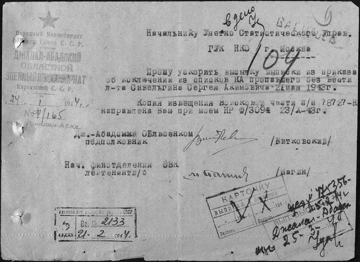 Охапкин Александр Федотович (капитан) – погиб 28.06.43г. при катастрофе А-20G на маршруте Уэлькаль-Сеймчан (АК)