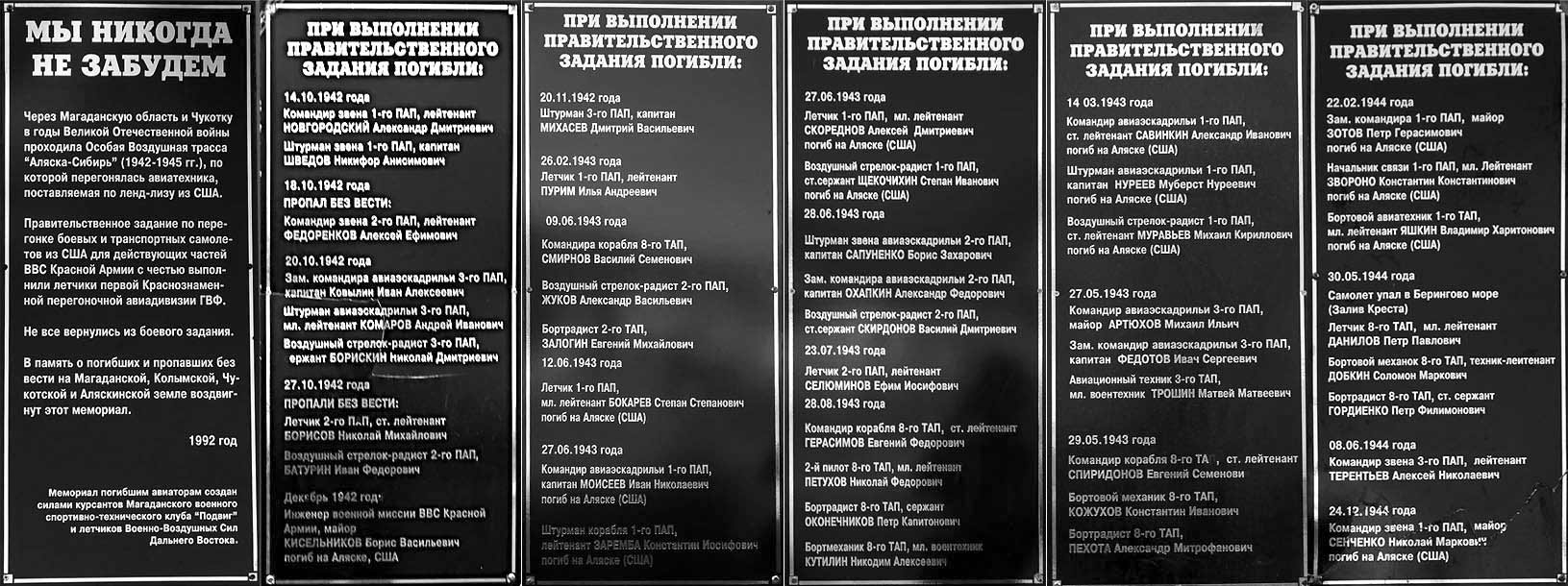 Памятник летчикам авиаперегоночной трассы АЛЯСКА – СИБИРЬ, погибшим во время катастрофы 17 ноября 1942 года в аэропорту г.Красноярска.