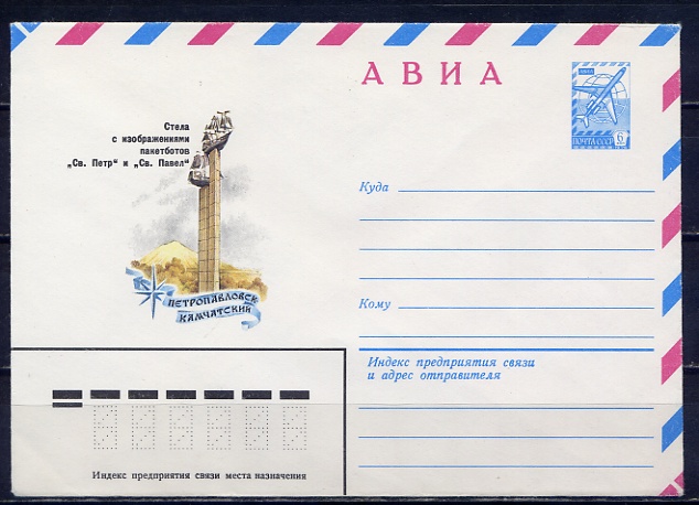 АВИА. Петропавловск-Камчатский. Стела с изображениеми пакетботов "Святой Петр" и "Святой Павел"