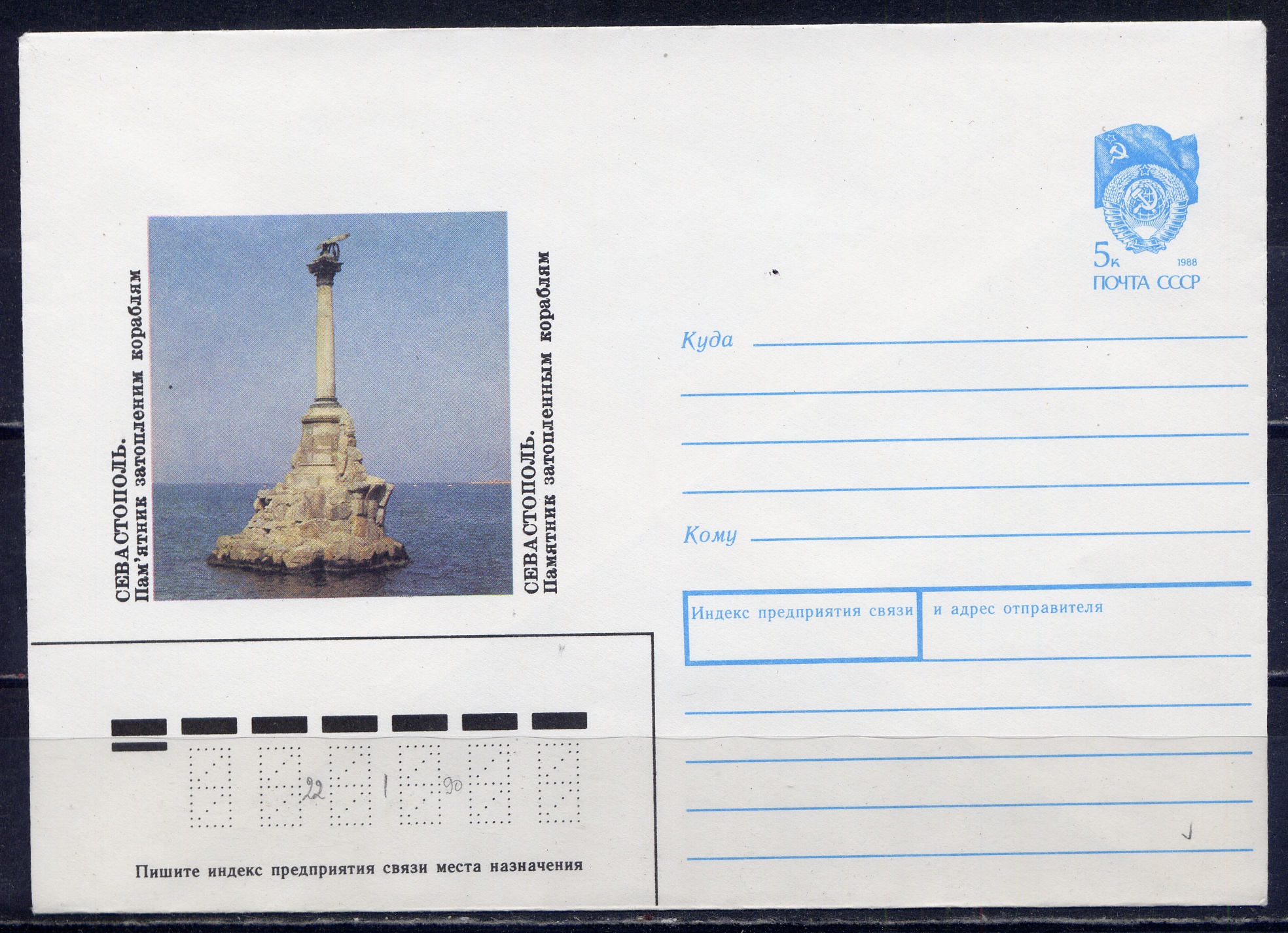 Севастополь. Памятник затопленным кораблям. Марка без рамки. Зак.105620. 1990