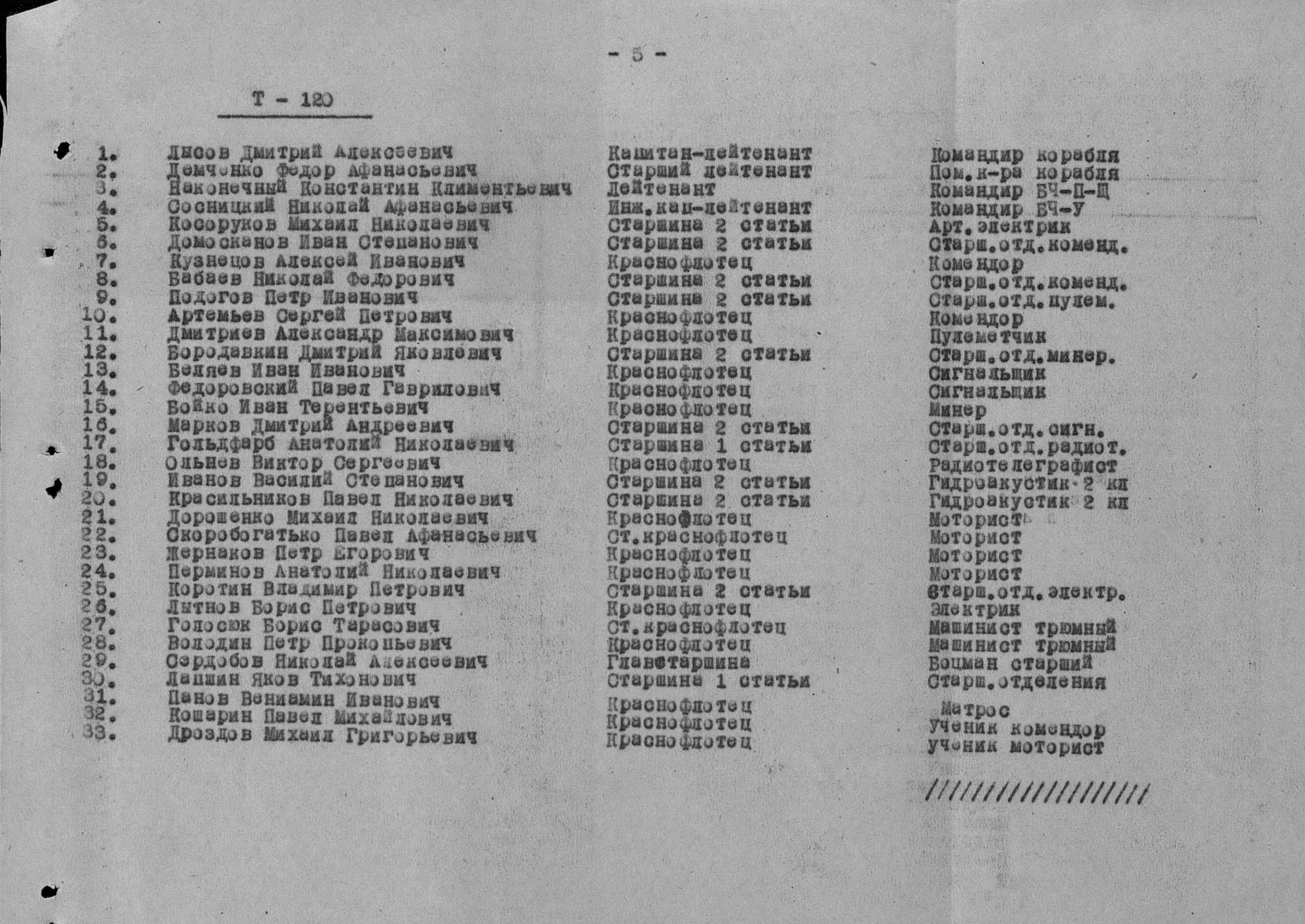 Донесения о безвозвратных потерях №6/01073 от 23.09.1944 г. ОРСО СФ (вх.3410с от 03.10.1944 УПК ВМФ)