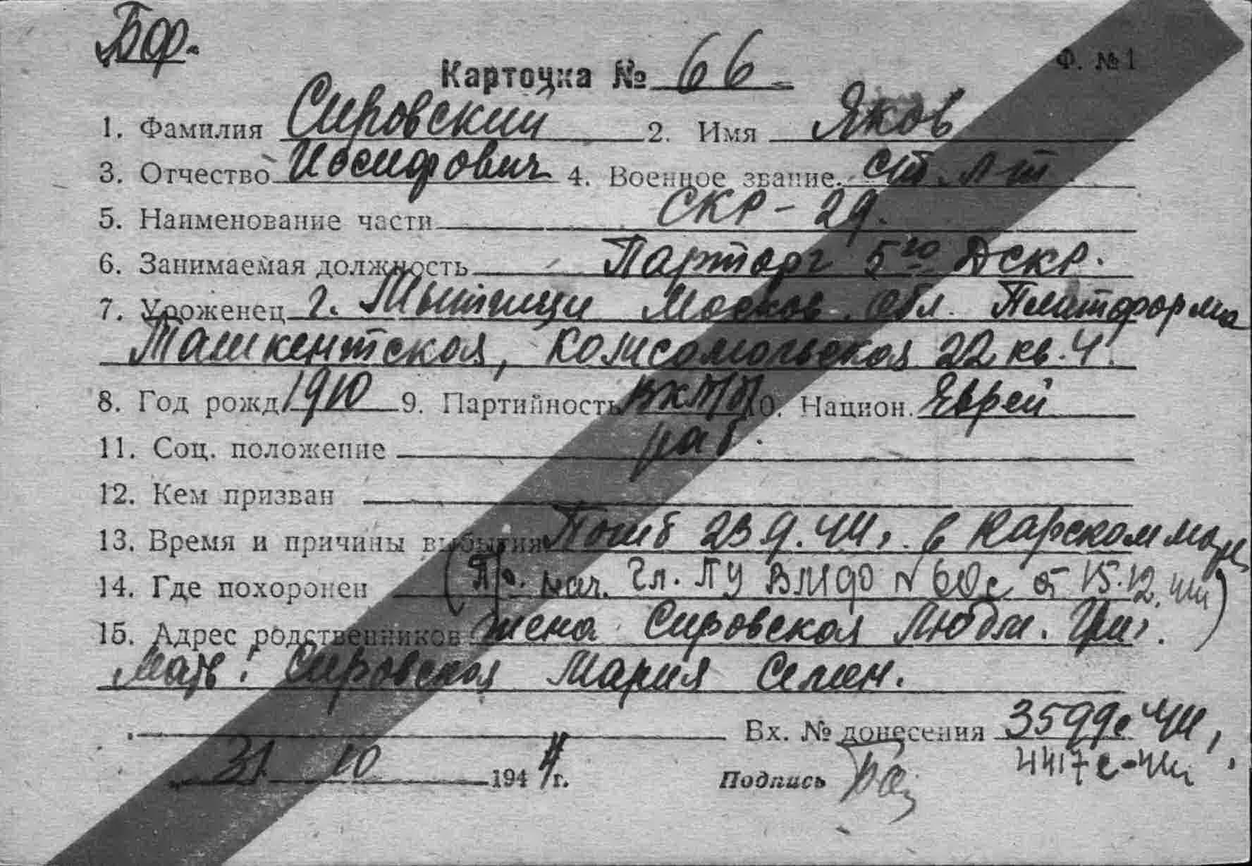 Место призыва Сударевский РВК, Харьковская обл.