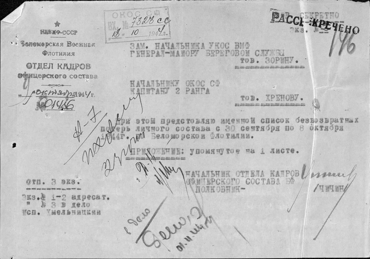 Остается добавить следующее. На итоговом разборе похода кораблей из порта Диксон к мысу Челюскин и обратно в период с 15 по 24 сентября 1944 года по поводу гибели СКР-29 «Бриллиант» все офицеры высказали единое мнение.