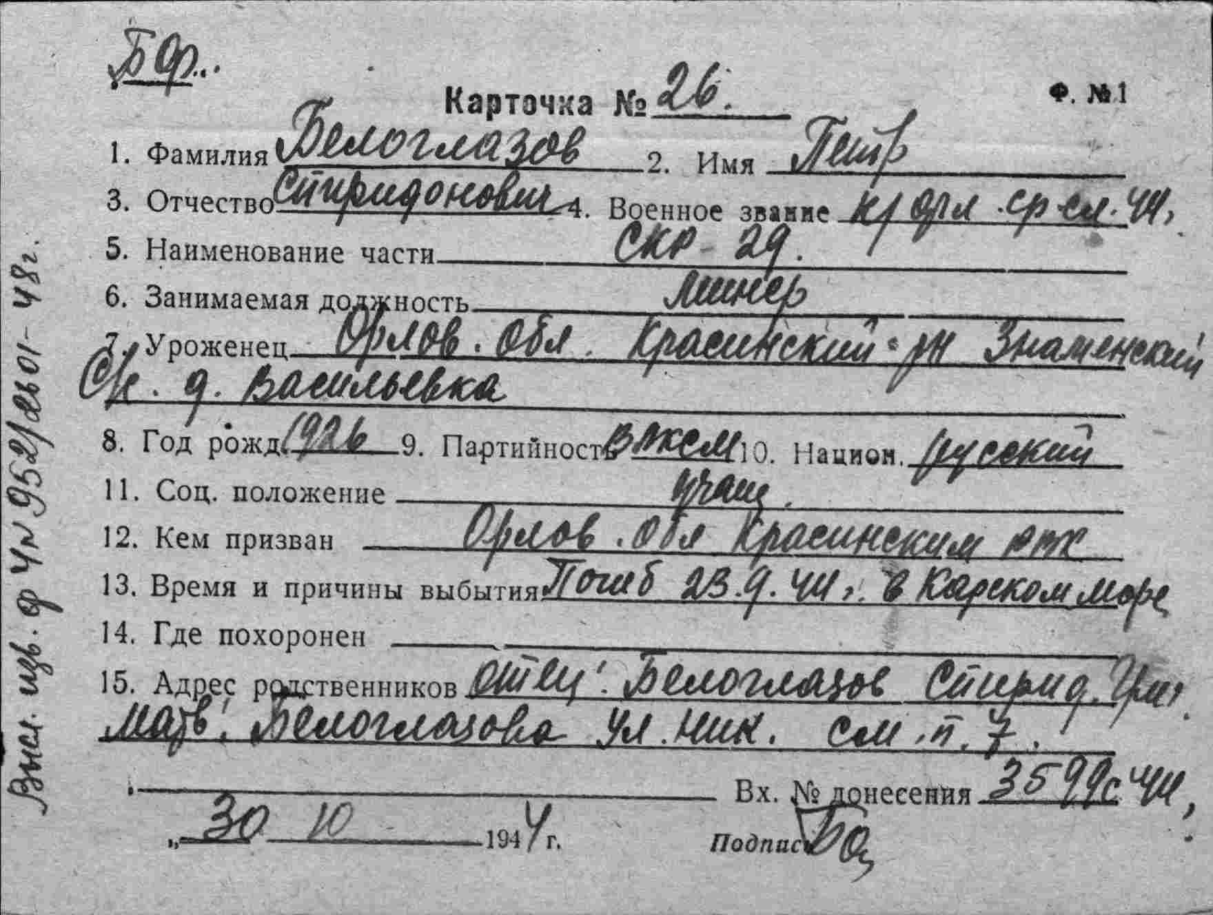 Белоглазов Петр Спиридонович, к-фл., минер