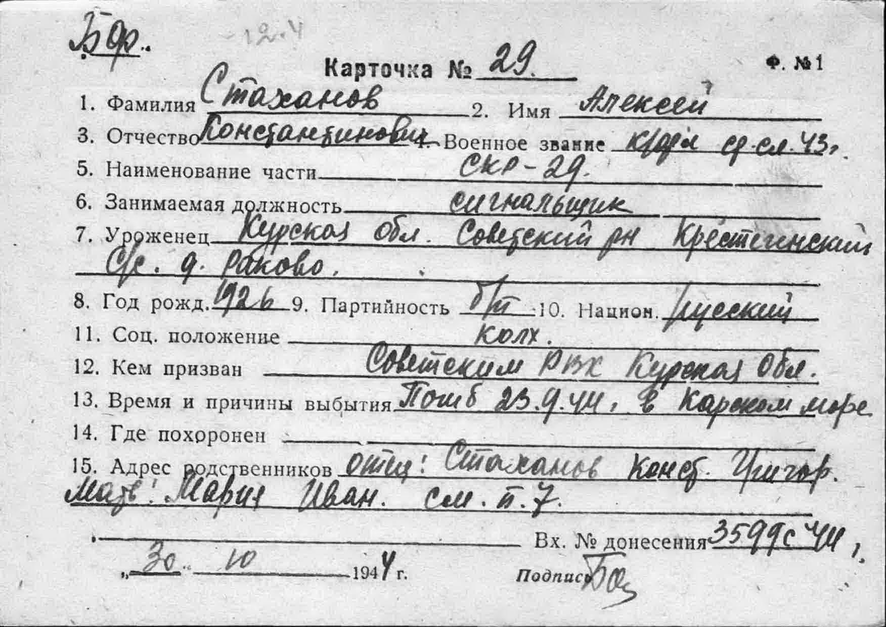 Стаханов Алексей Константинович, к-фл., сигнальщик