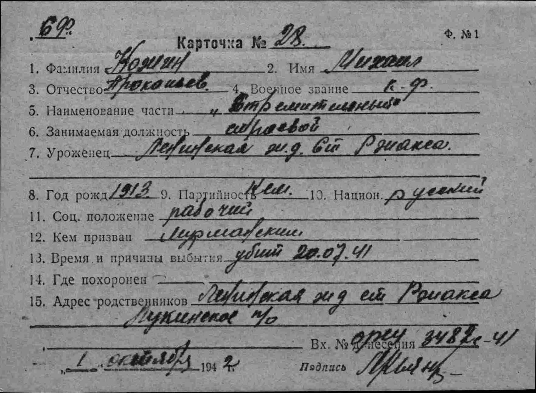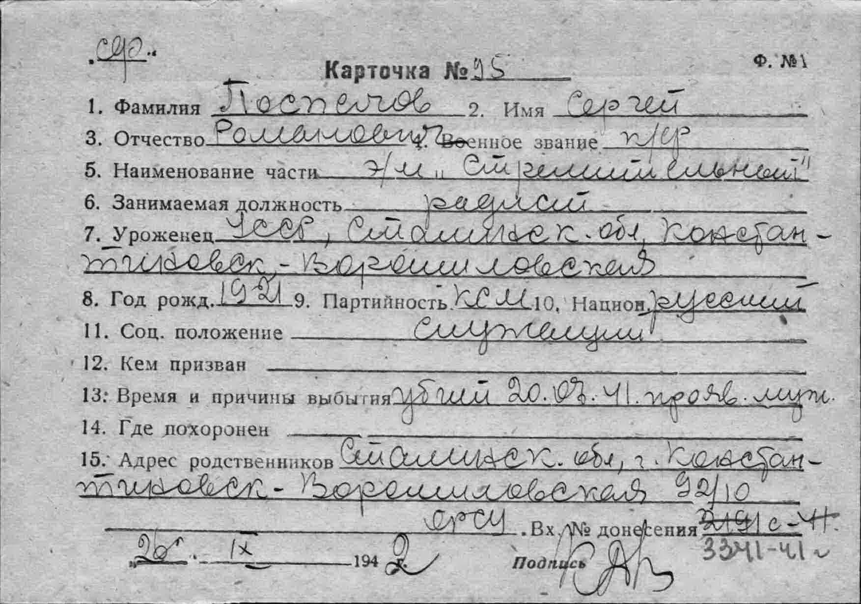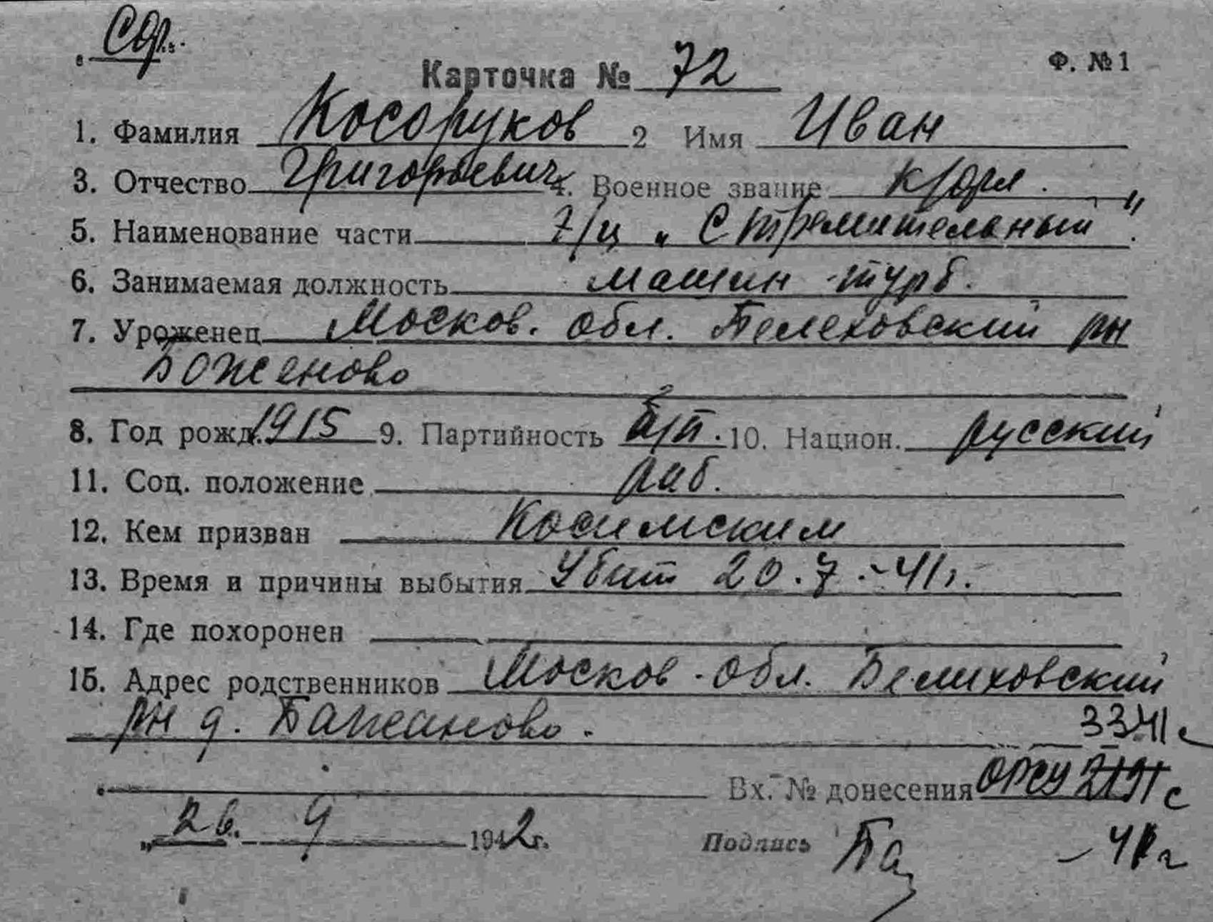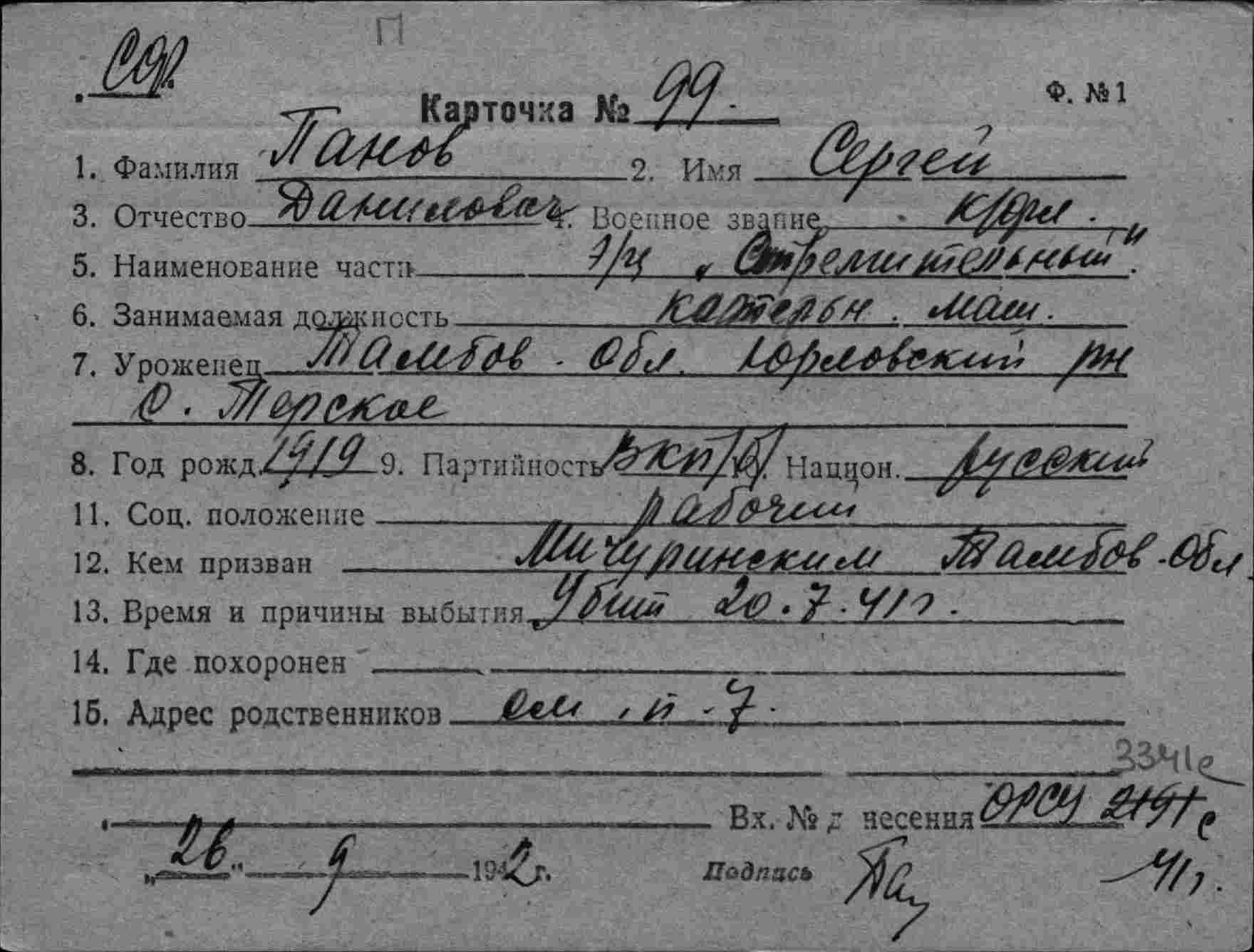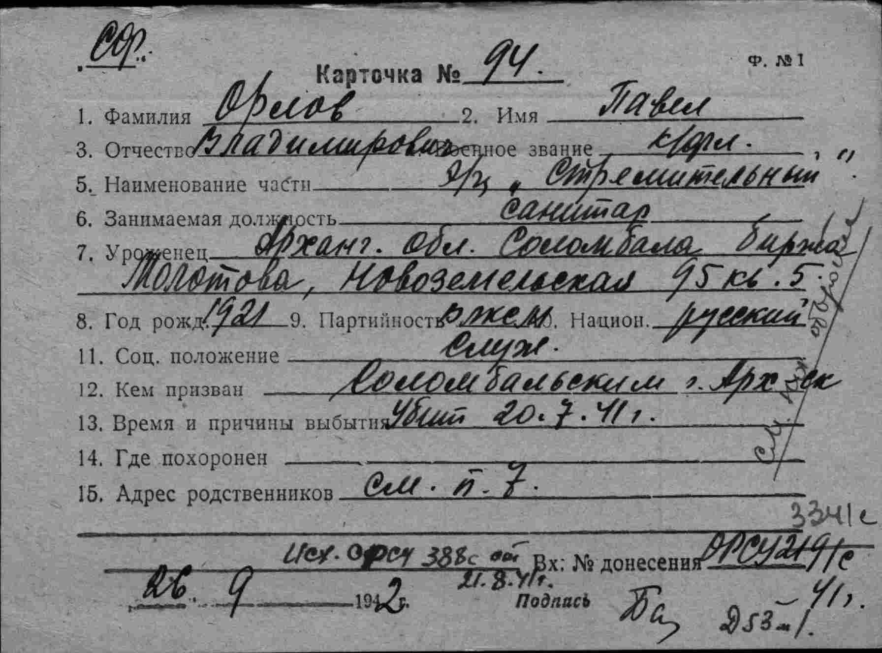 Дата выбытия 20.07.1941