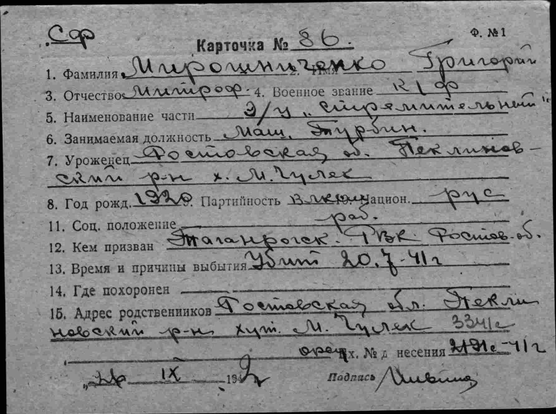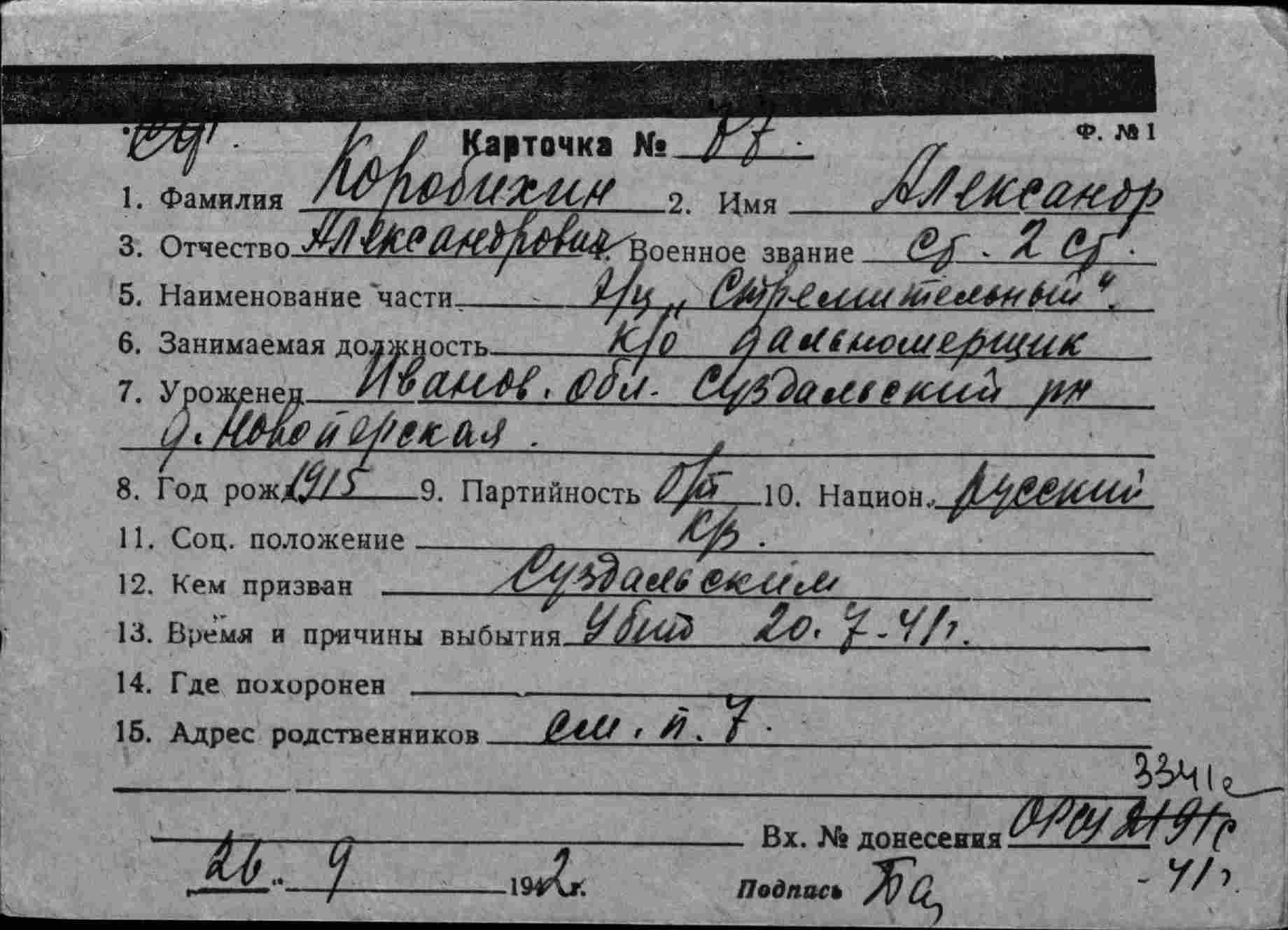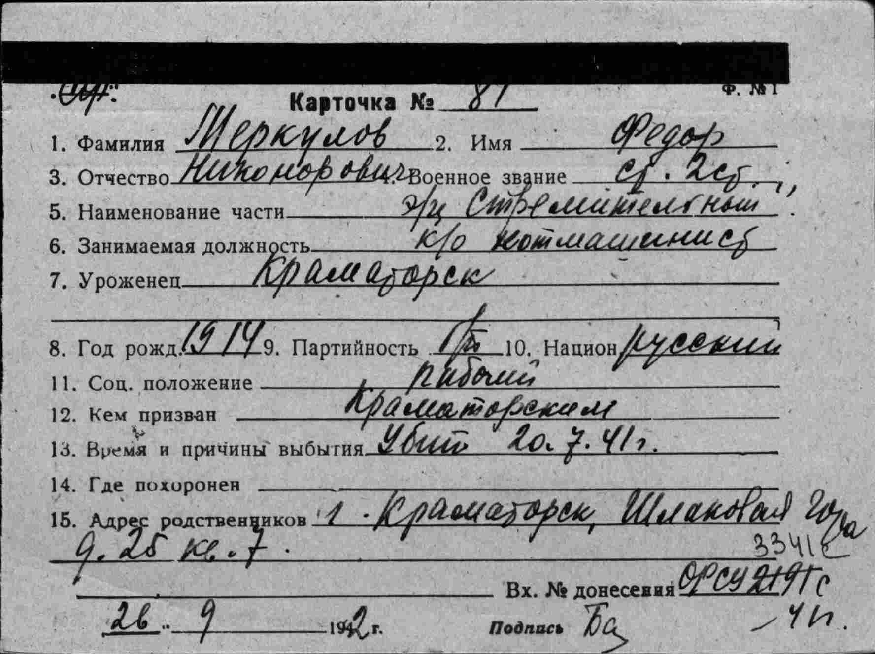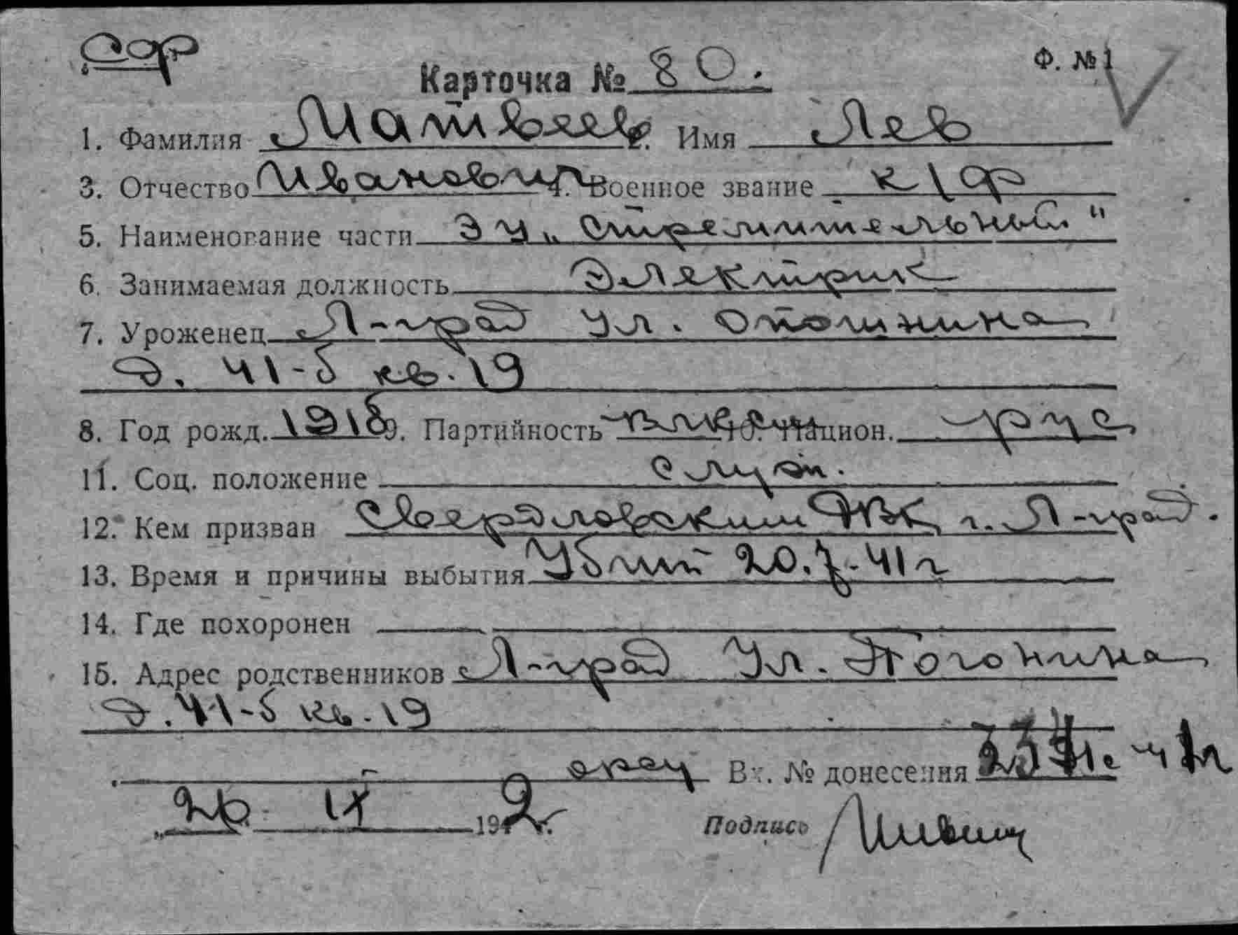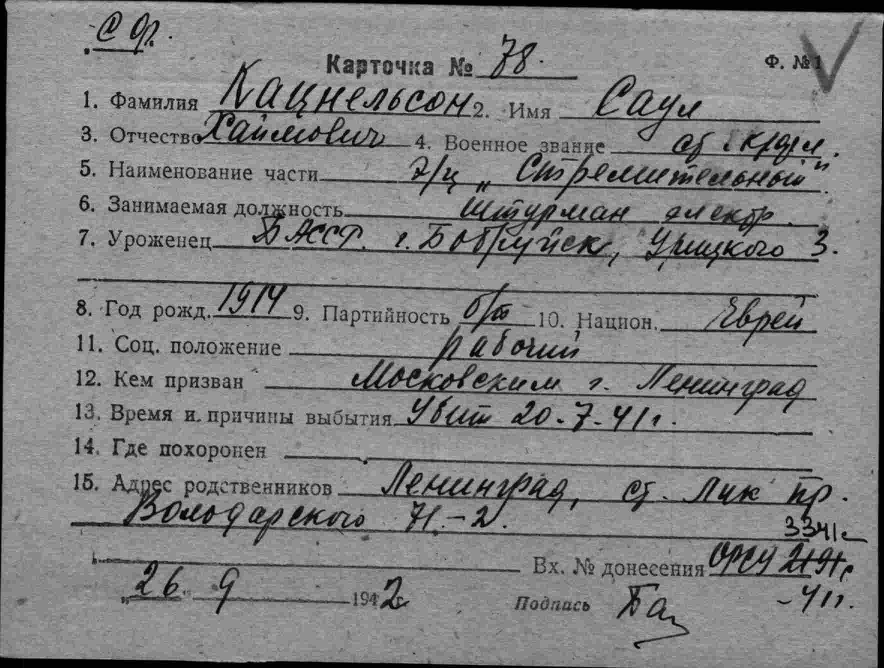Дата выбытия 20.07.1941