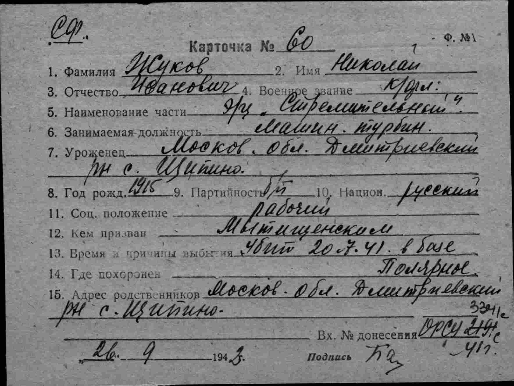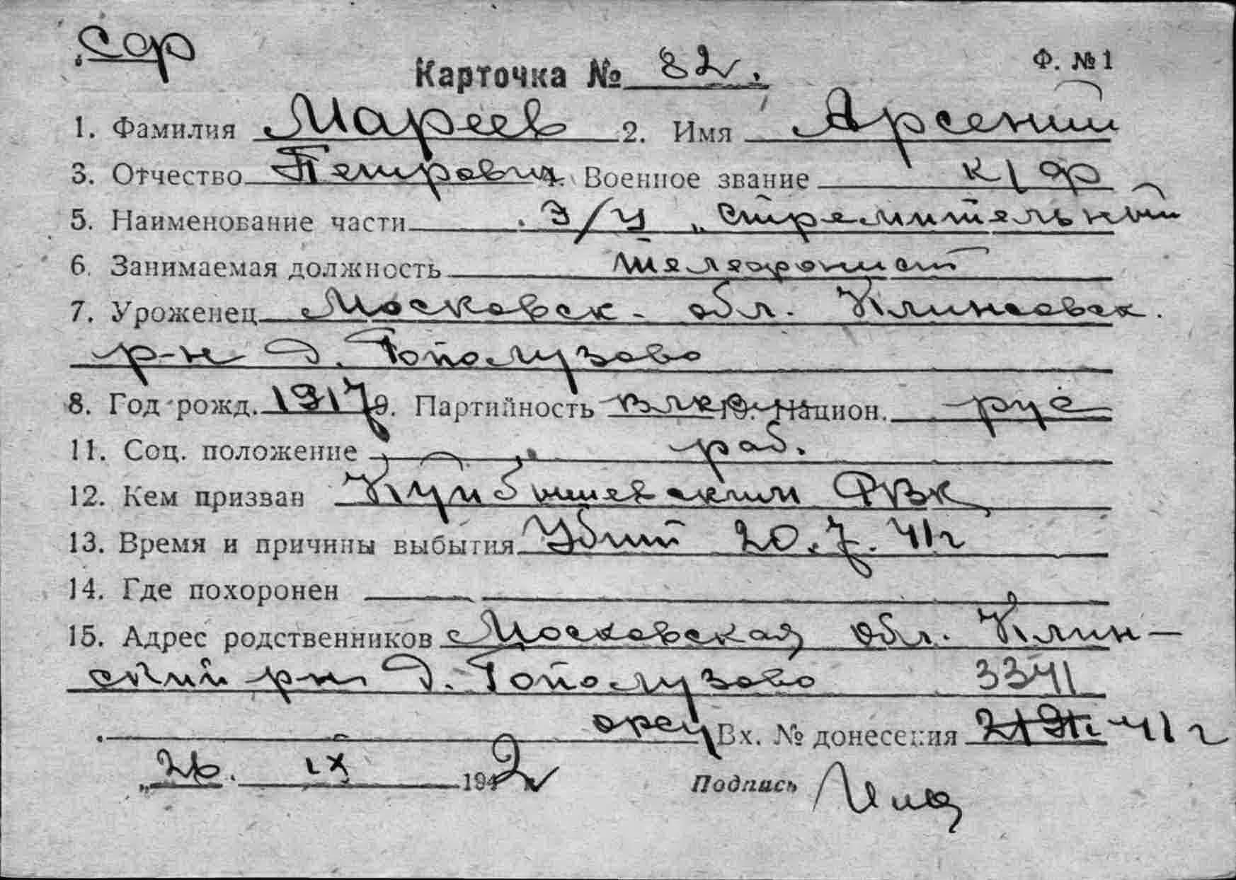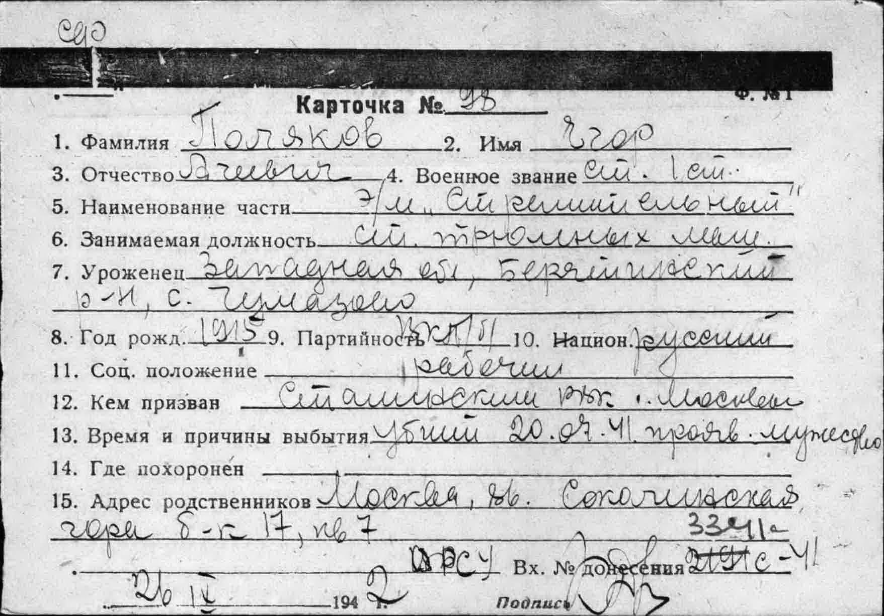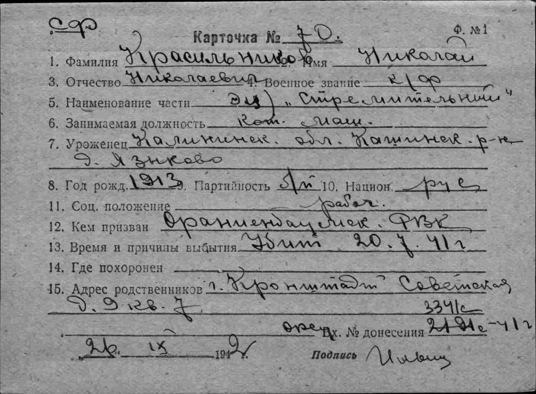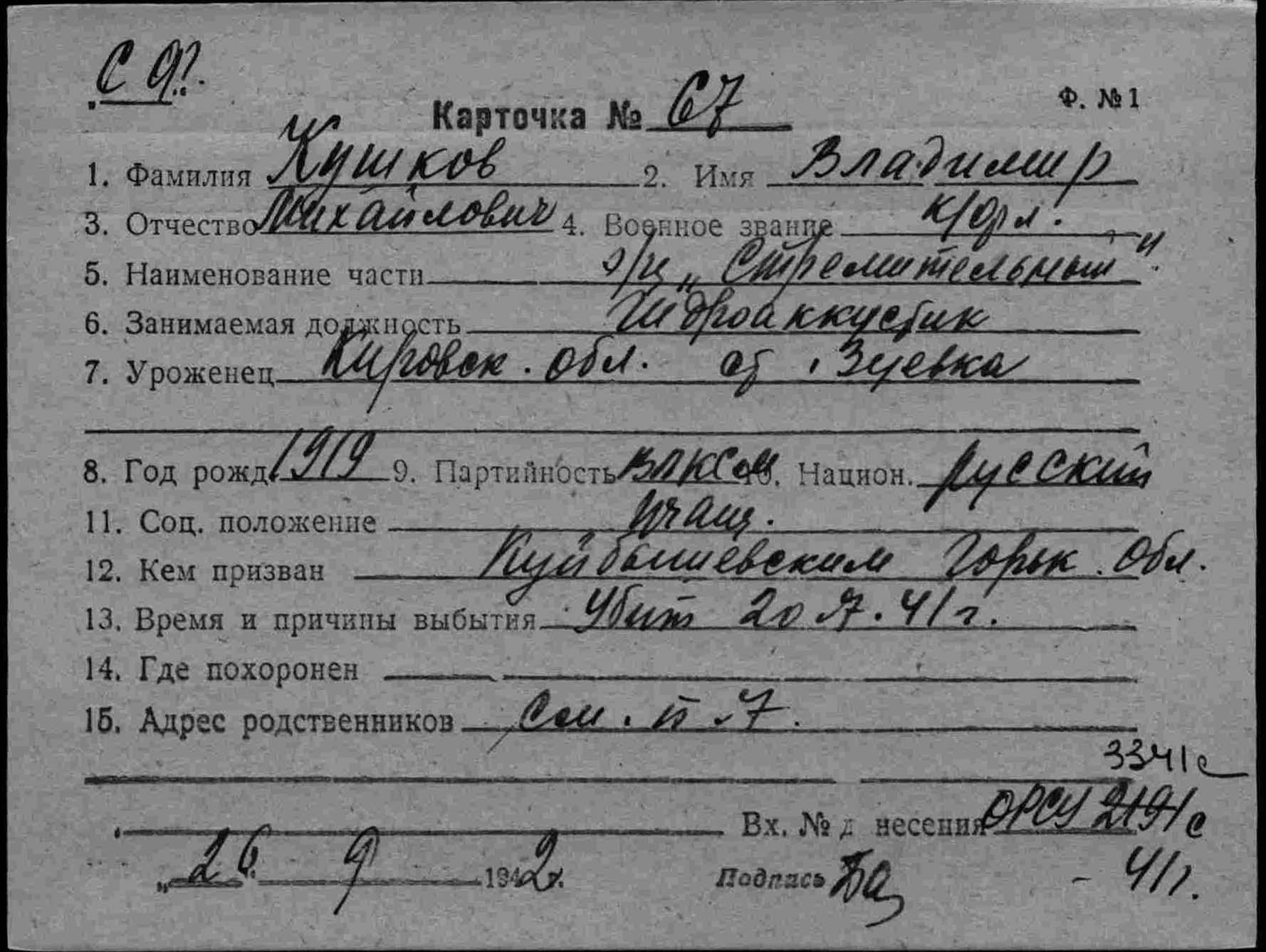 Дата выбытия 20.07.1941