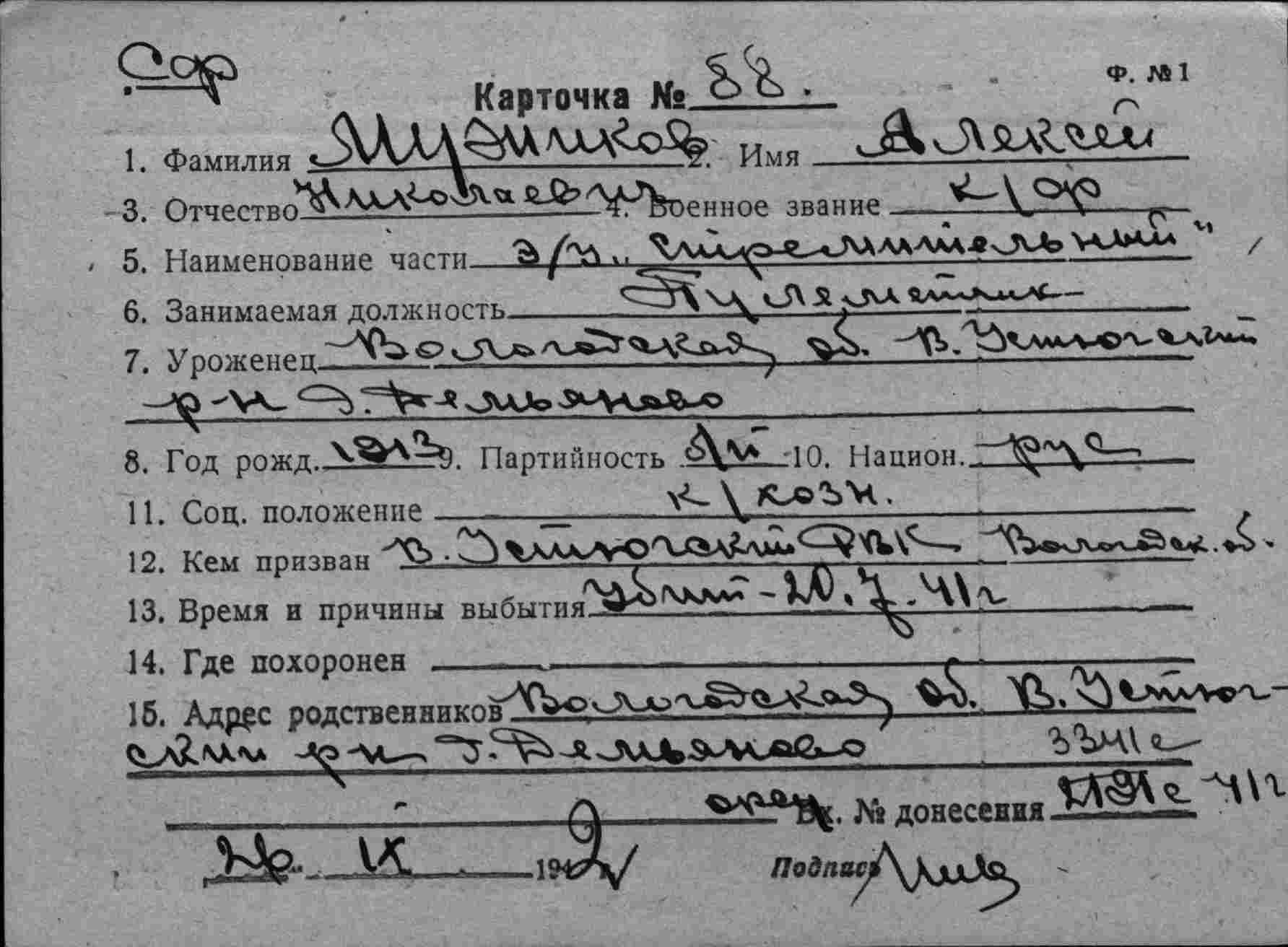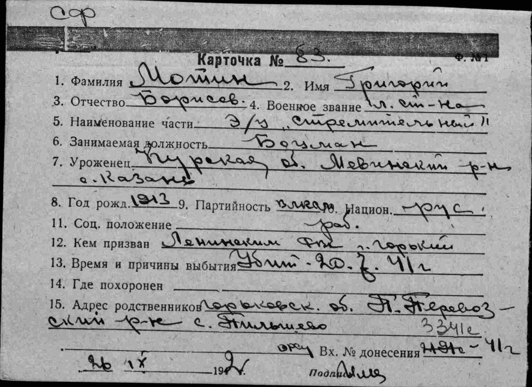 Название источника информации Картотека безвозвратных потерь