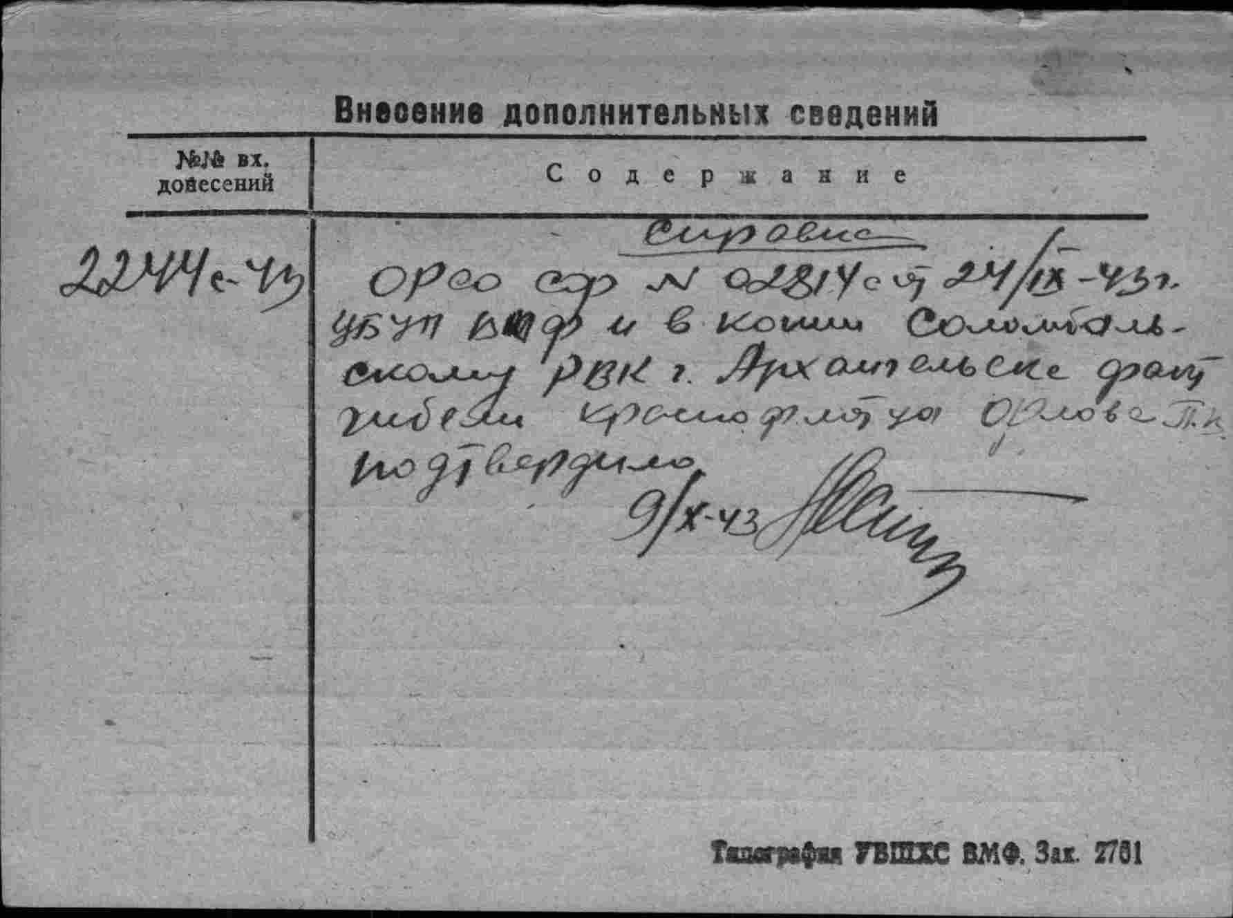 Место призыва Соломбальский РВК