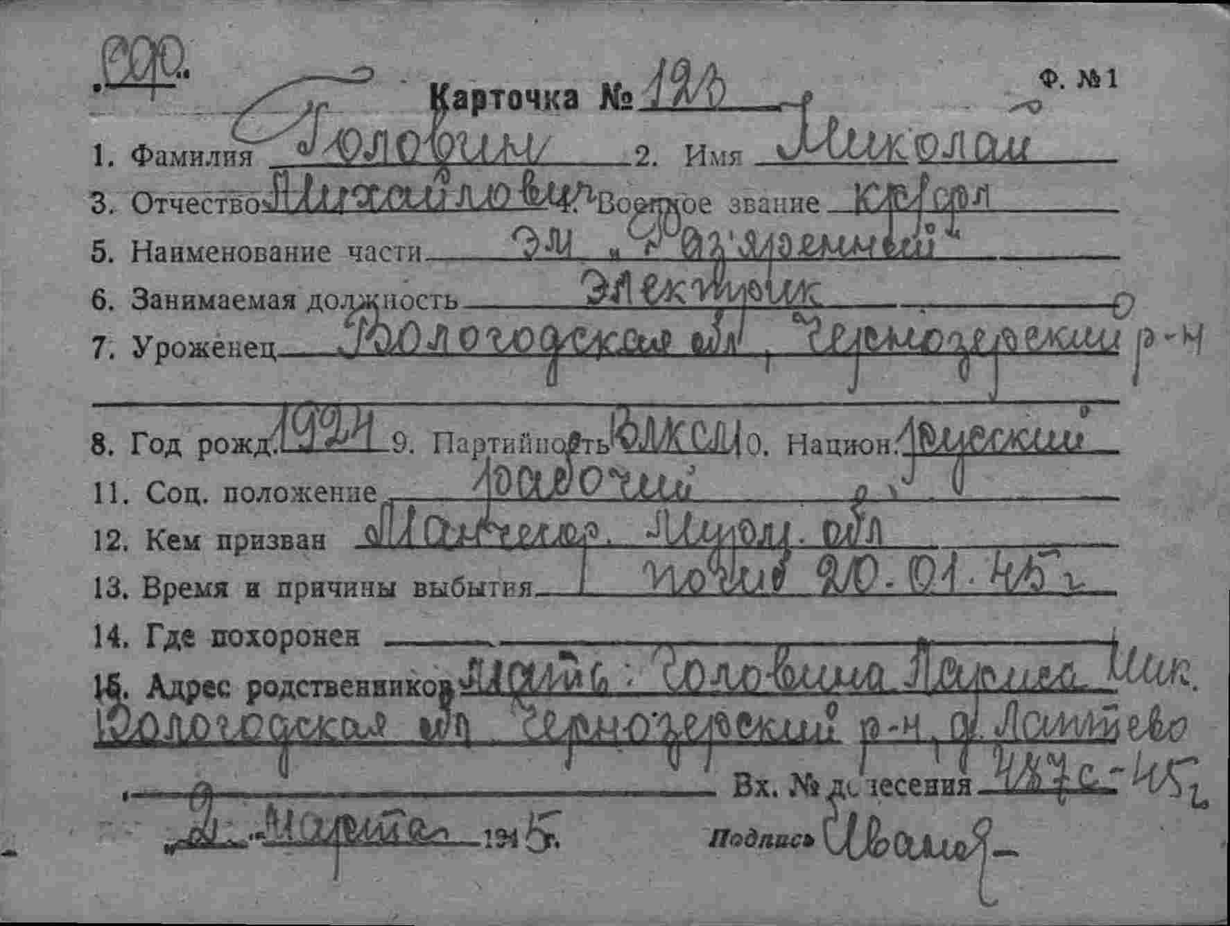 Дата выбытия 25.01.1945