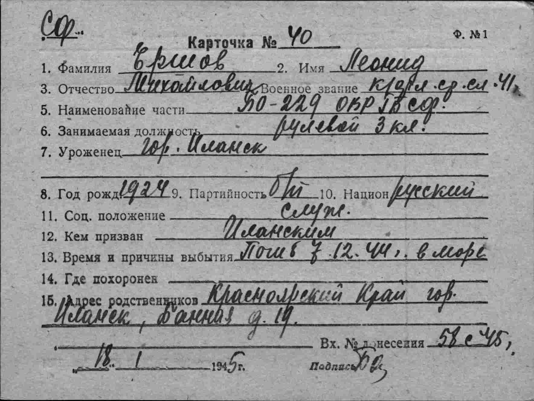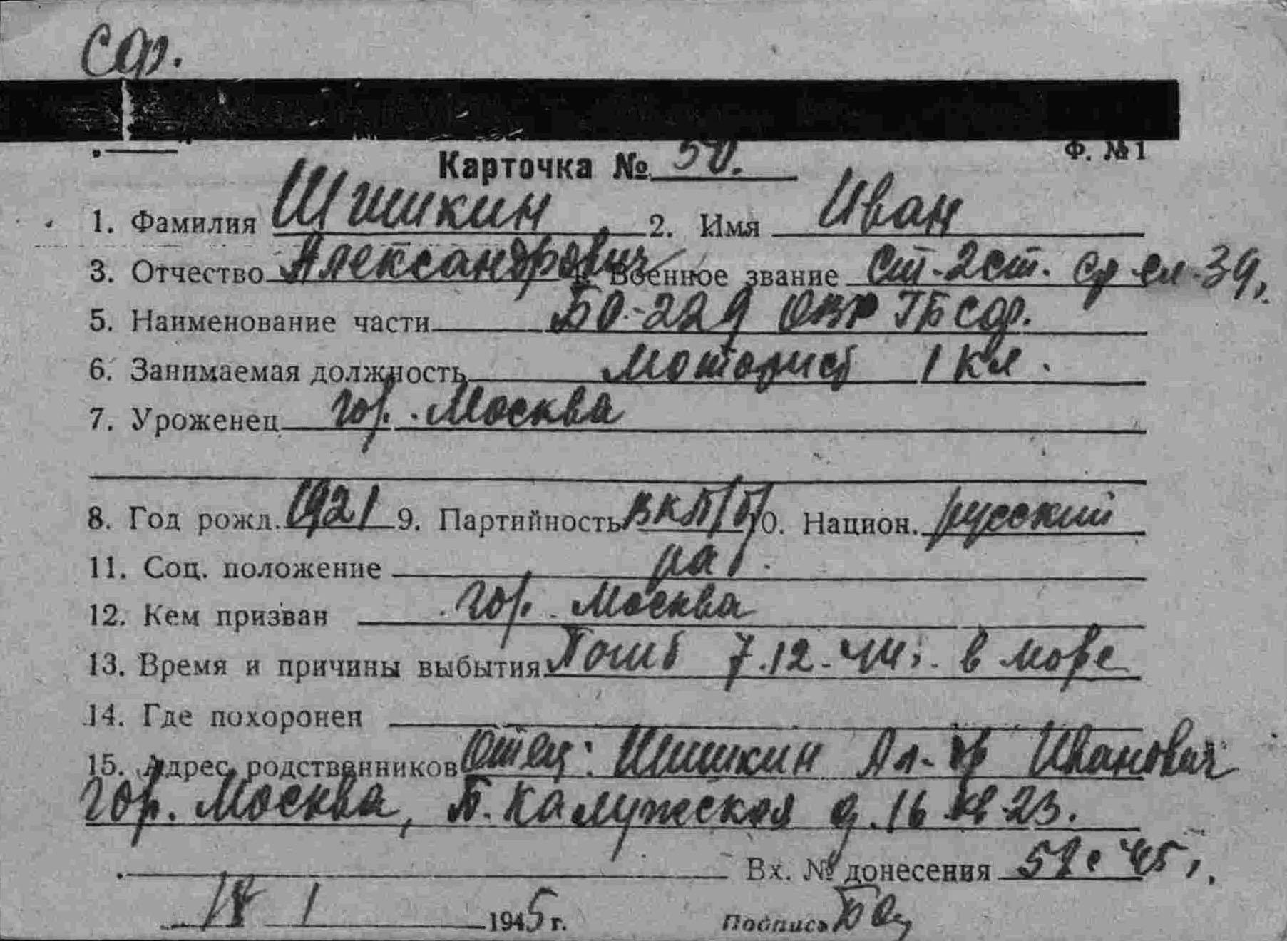 Великая Отечественная. День за днём // Морской сборник. - 1994. - № 12. – С.11-17.