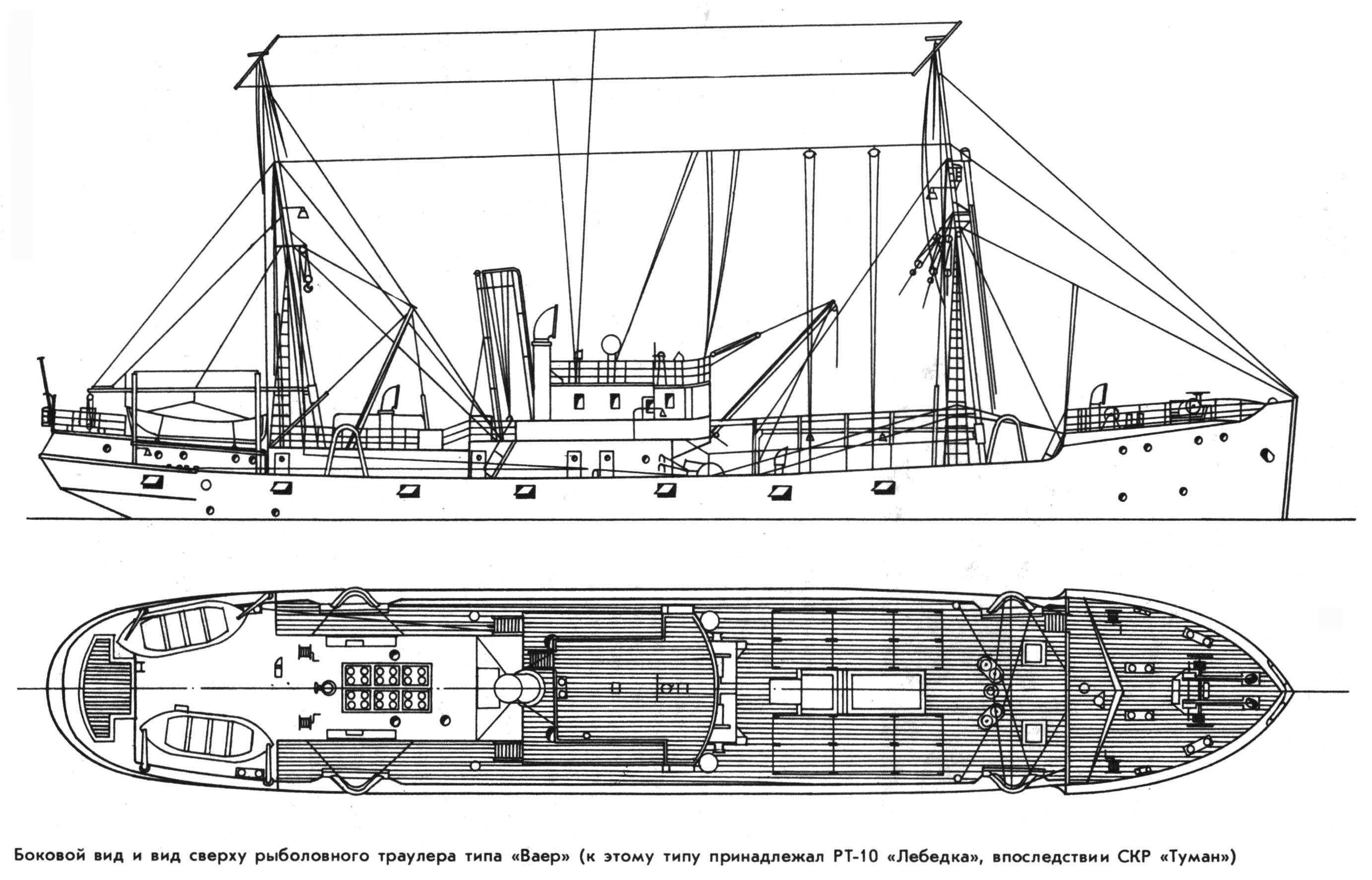 из рыболовного траулера. Вооруженный двумя малыми пушками,