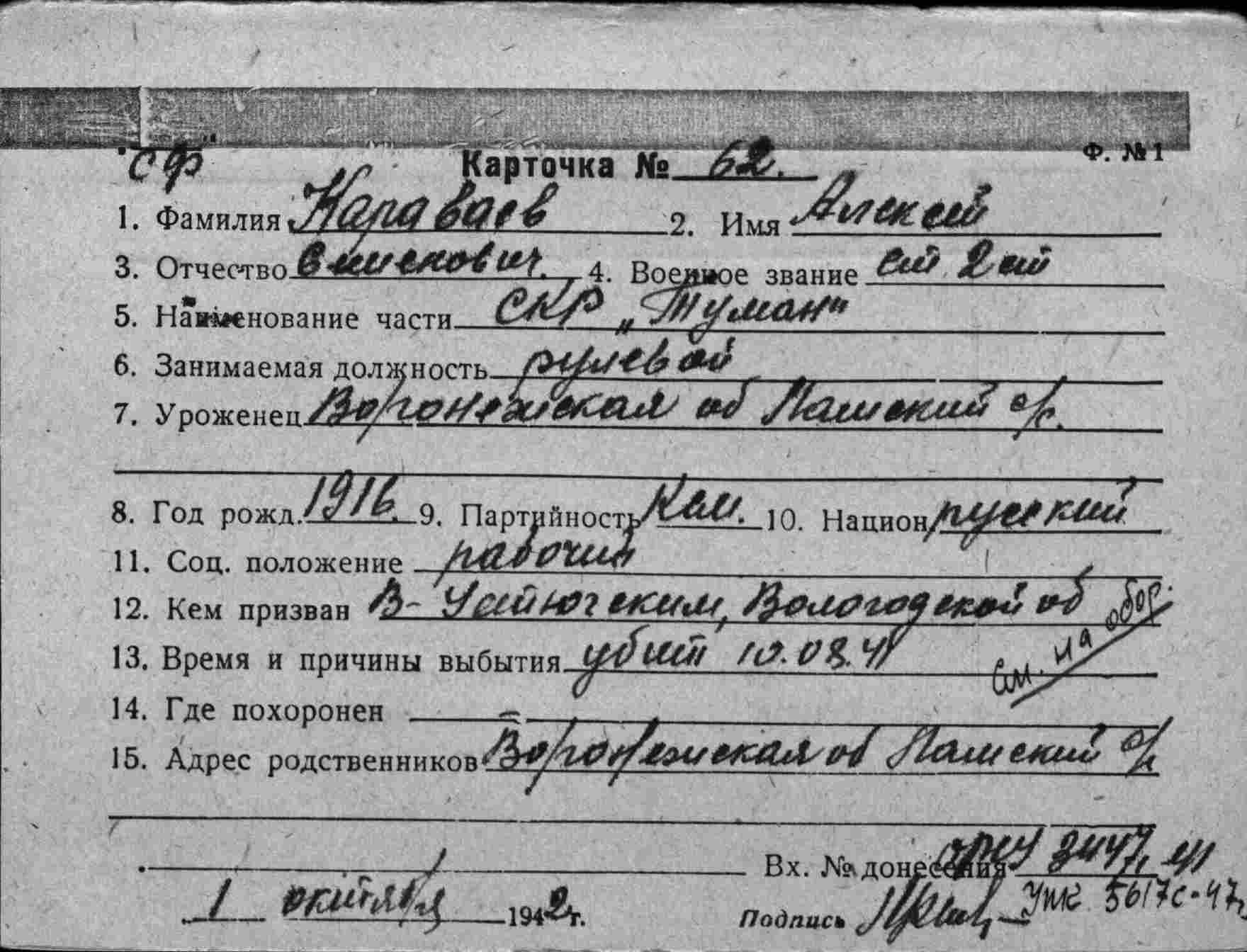 1. ШЕСТАКОВ Лев Александрович (1918 г. рождения) - командир СКР, старший лейтенант, погиб 10.08.41 г.