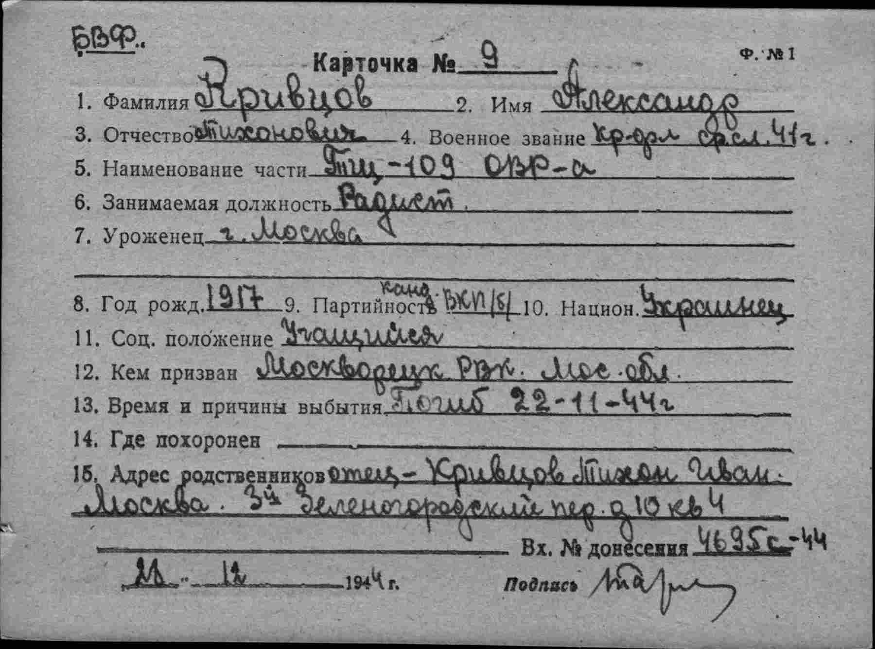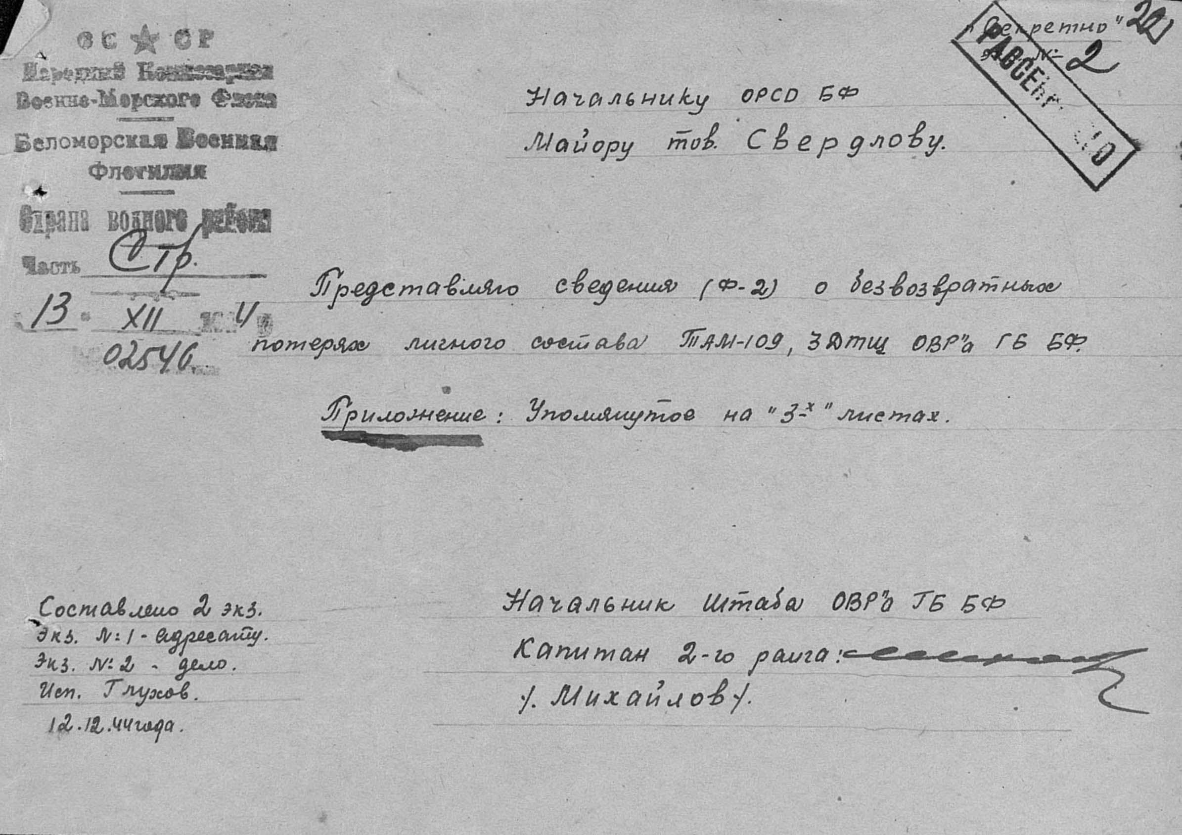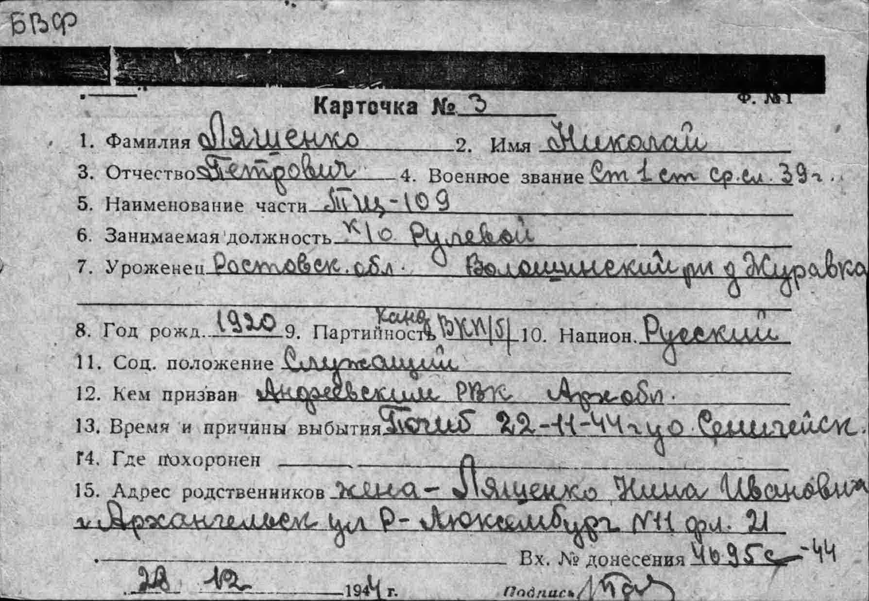 БВФ ОВР 13.12.1944 г. исх.№02546, ОРСО БВФ 13.12.1944 г. вх.№7384