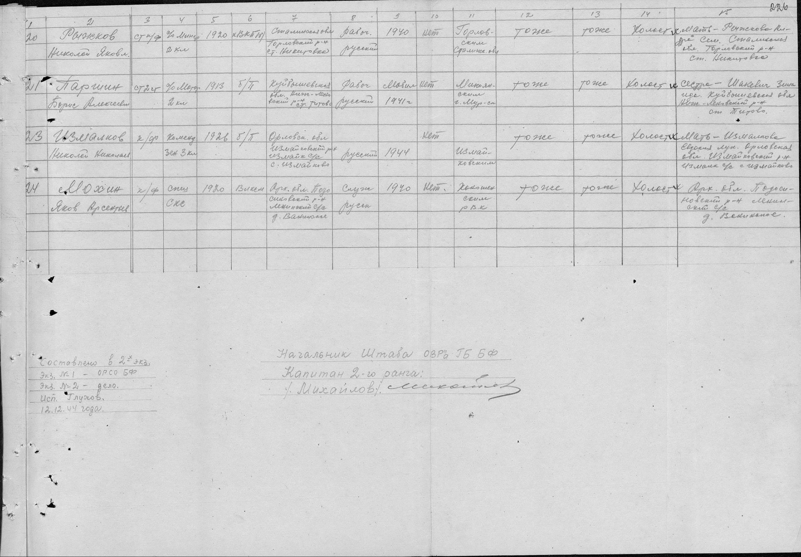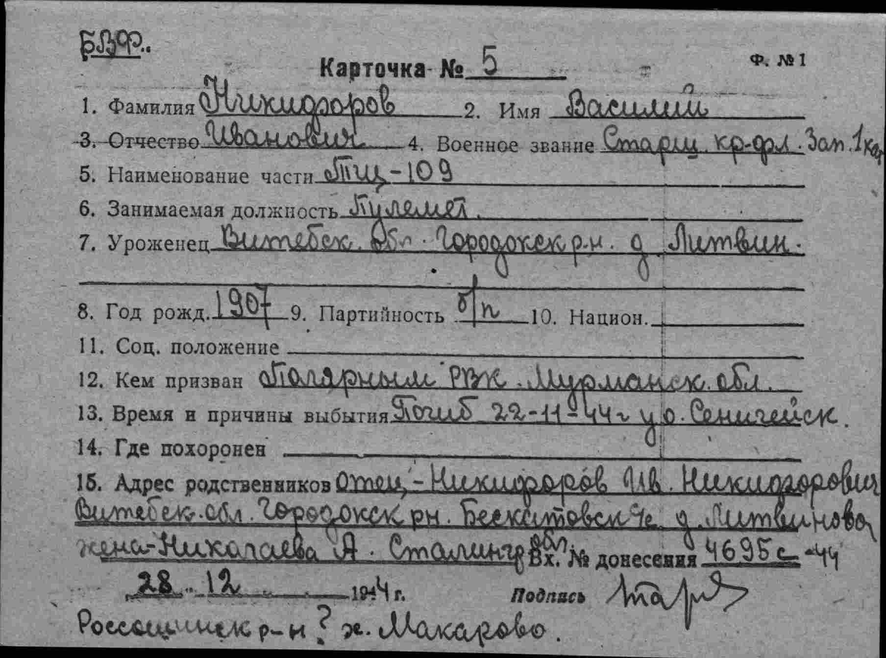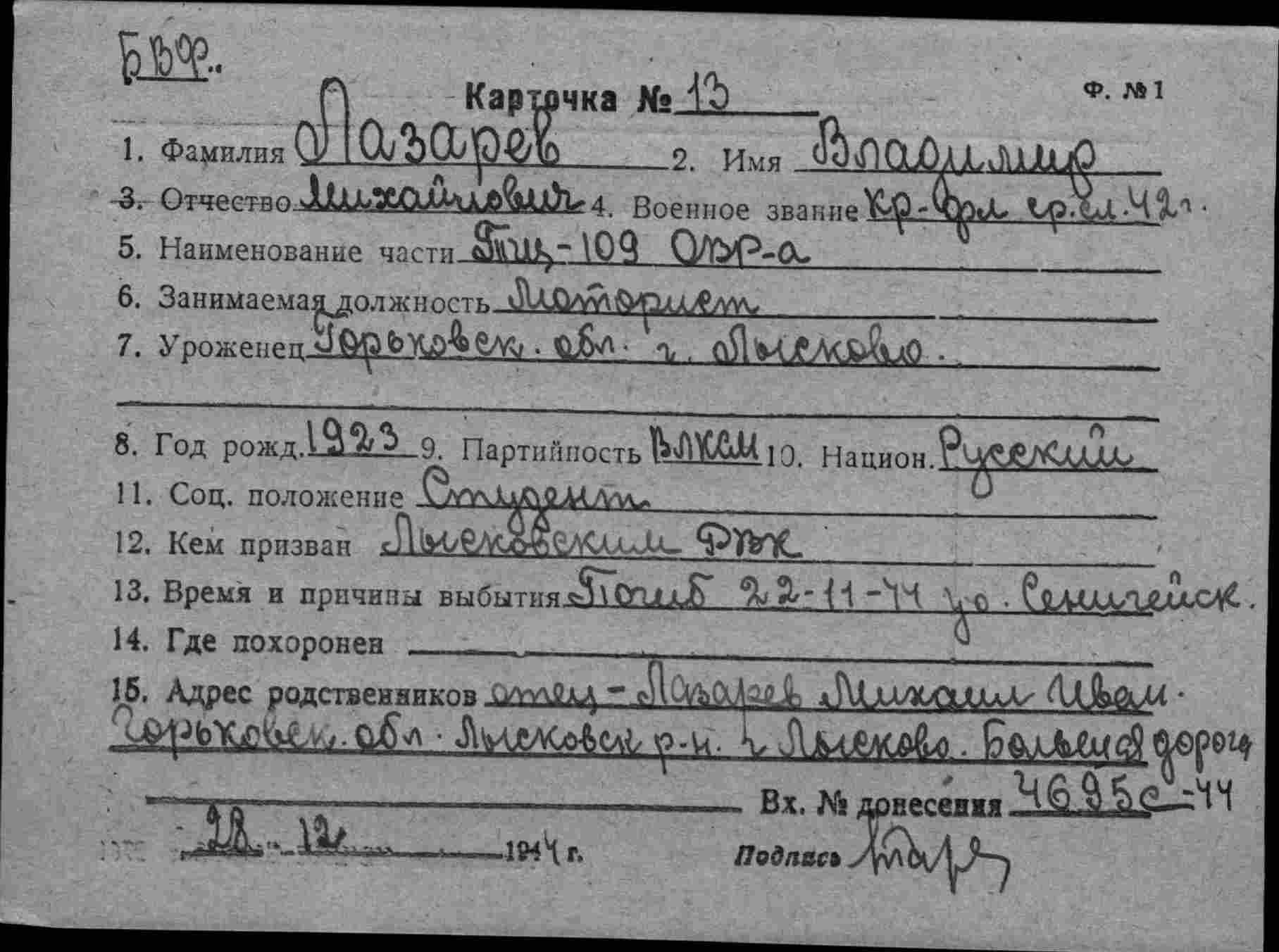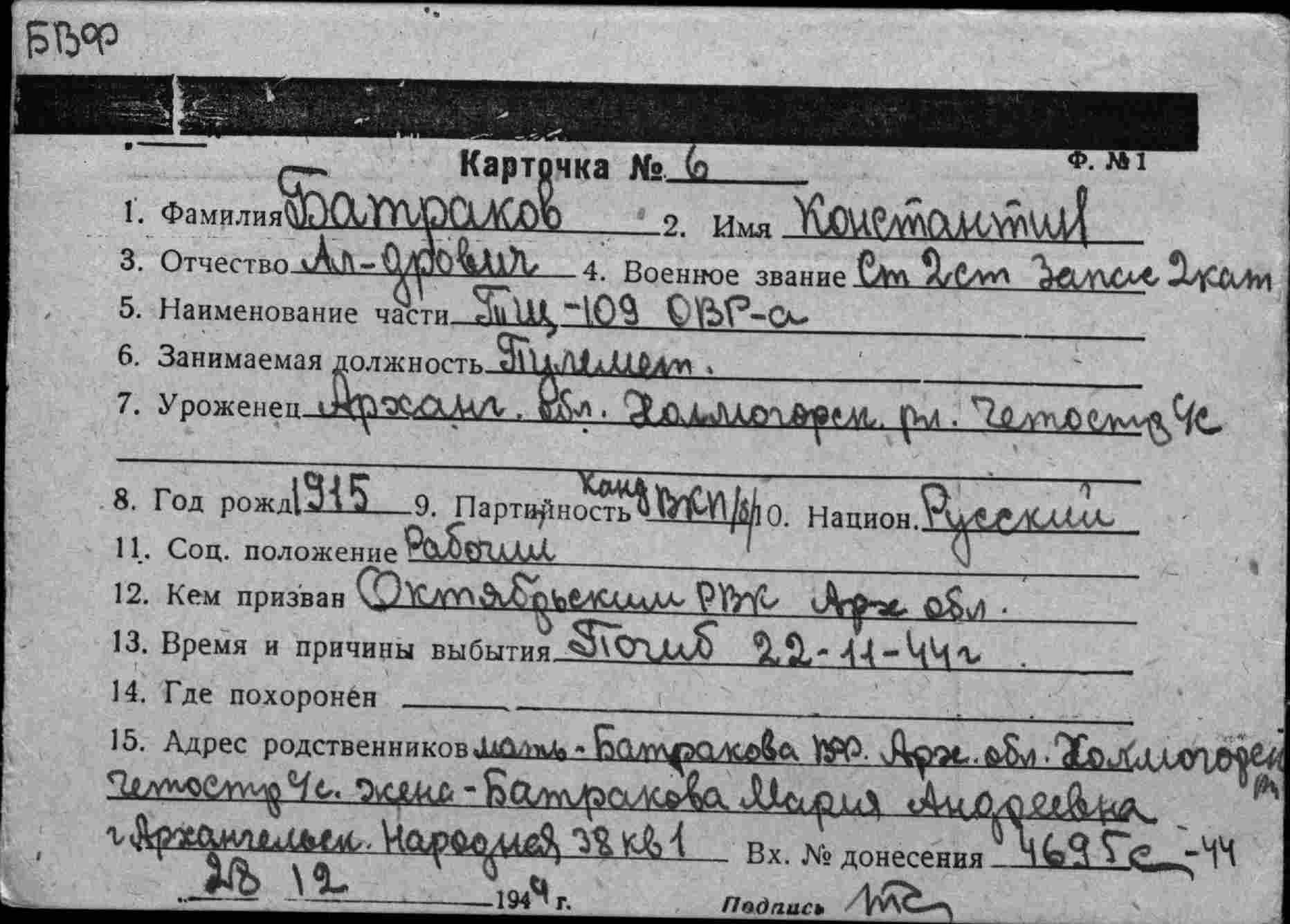 БВФ ОВР 13.12.1944 г. исх.№02546, ОРСО БВФ 13.12.1944 г. вх.№7384