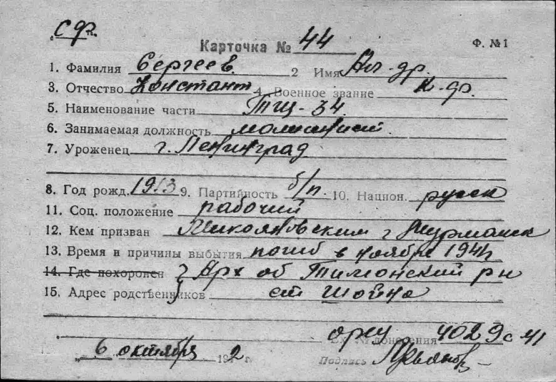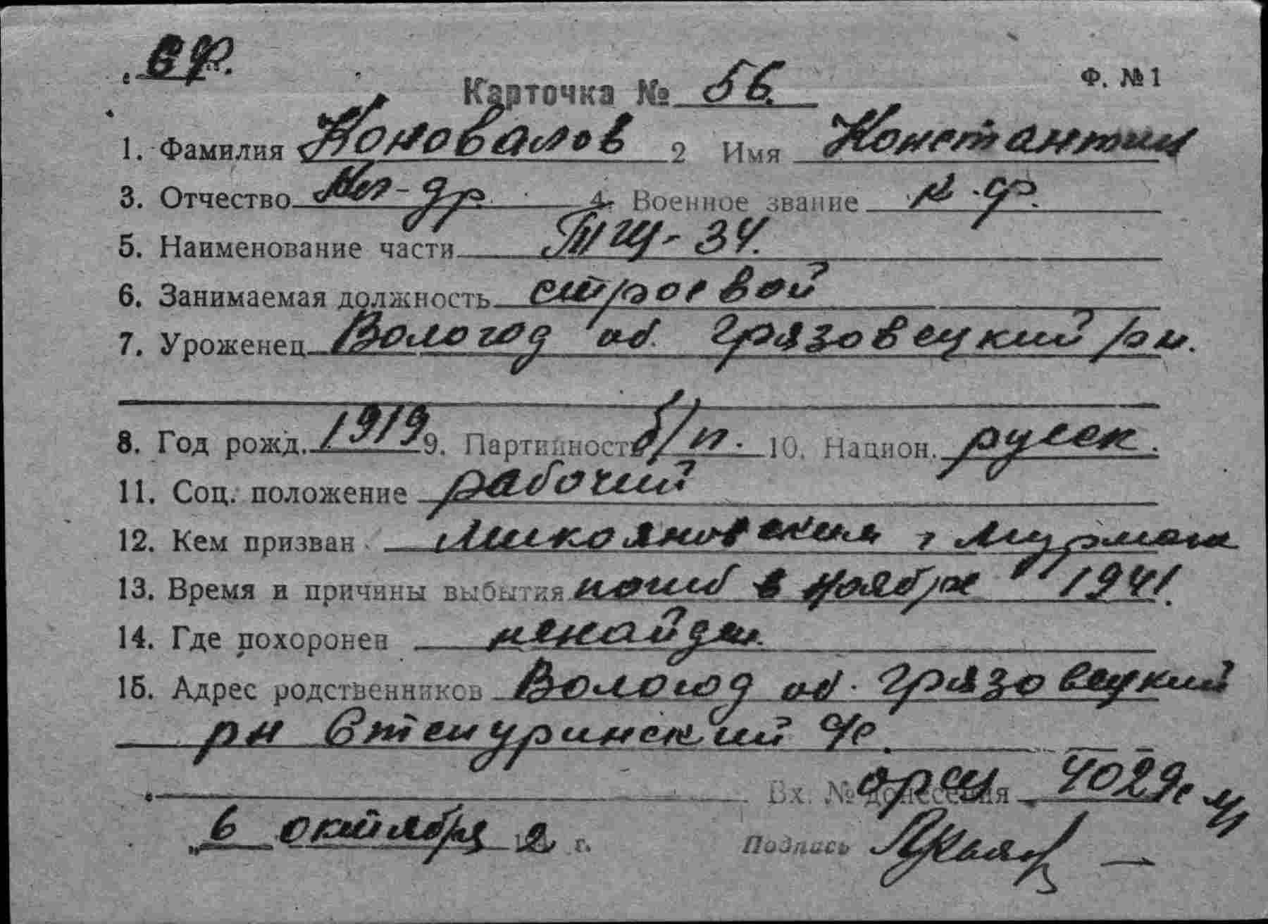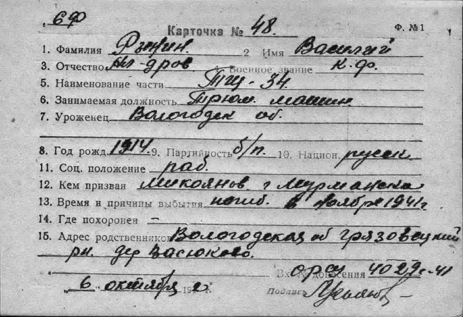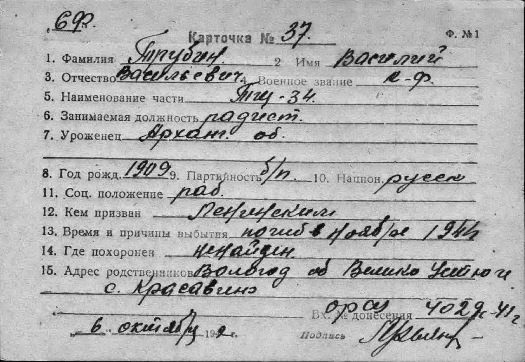 Дата выбытия __.11.1941