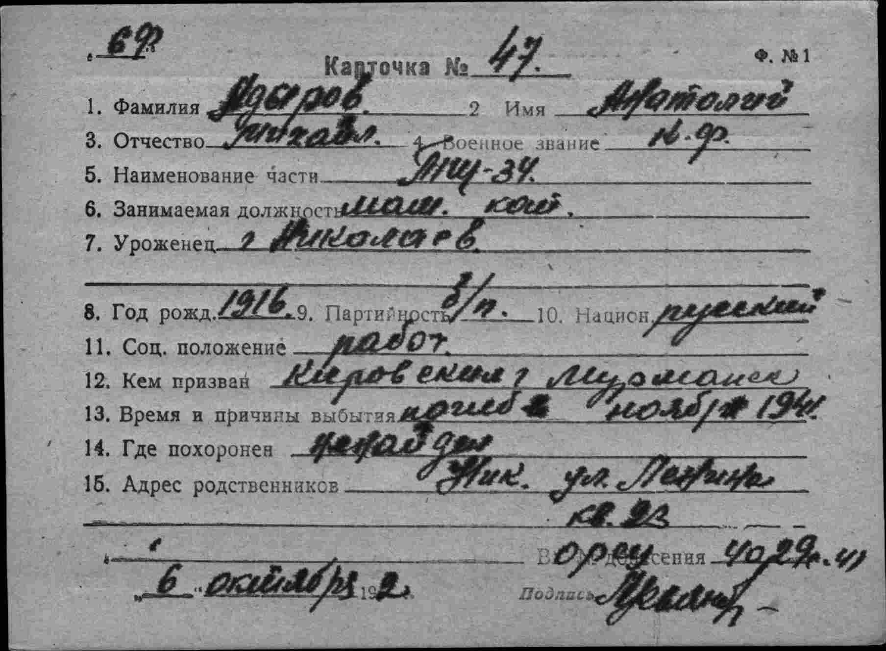 Дата выбытия 15.11.1941