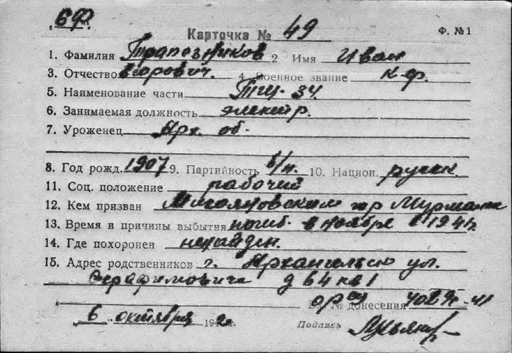 Дата рождения __.__.1907