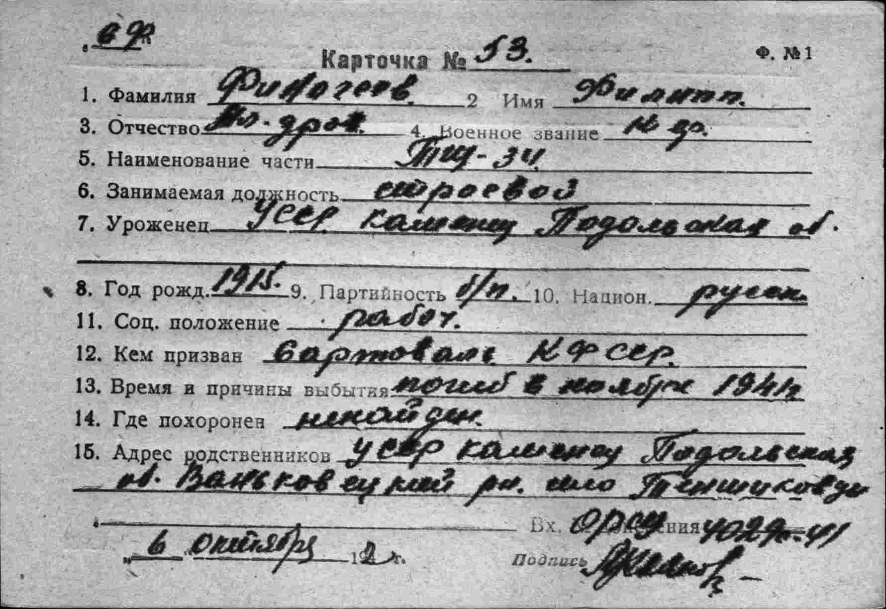 Дата выбытия __.11.1944