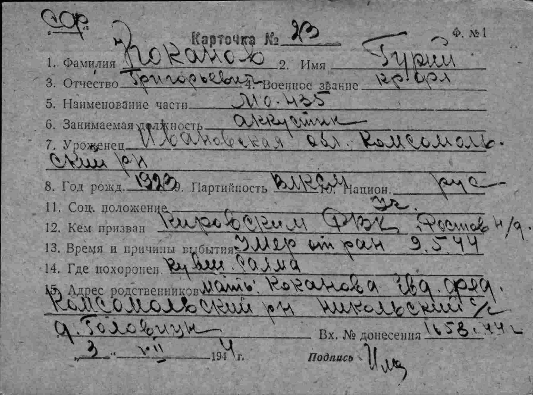 Дата выбытия 09.05.1944